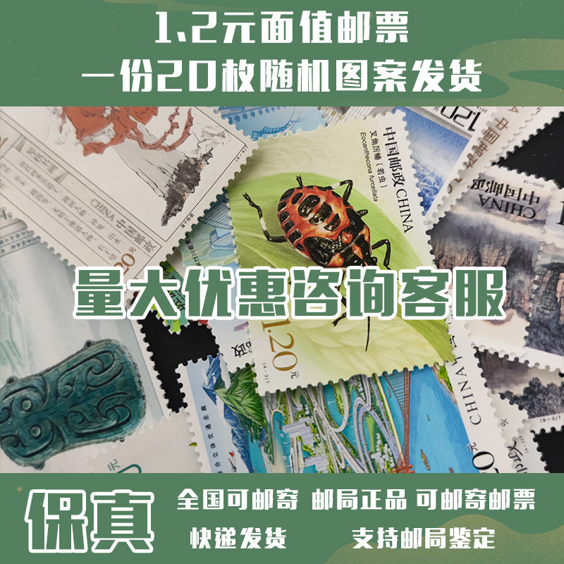 新中国邮票邮局正品保真可邮寄集邮120分打折邮票20枚随机图案