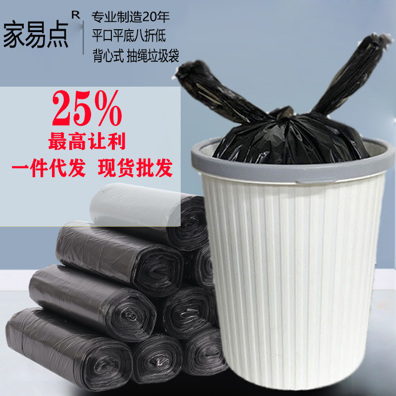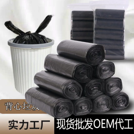 手提式加厚实惠装大中小号黑色背心塑料桶办公厨房家用连卷垃圾袋