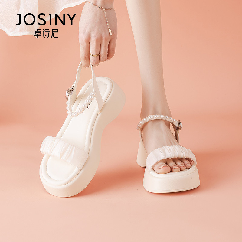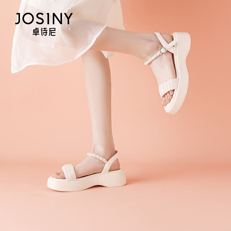 高货卓诗尼凉鞋女夏季2024新款坡跟凉鞋仙女风沙滩鞋厚底增高沙滩