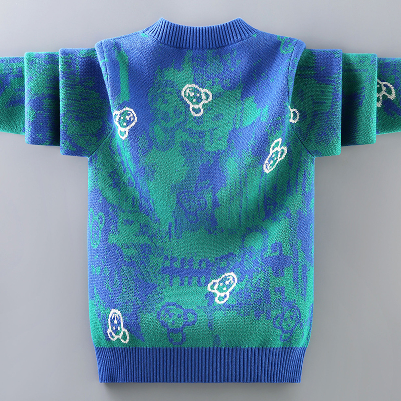 男童毛衣套头儿童线衣中大童冬季加绒加厚男孩宝宝针织衫晕染洋气