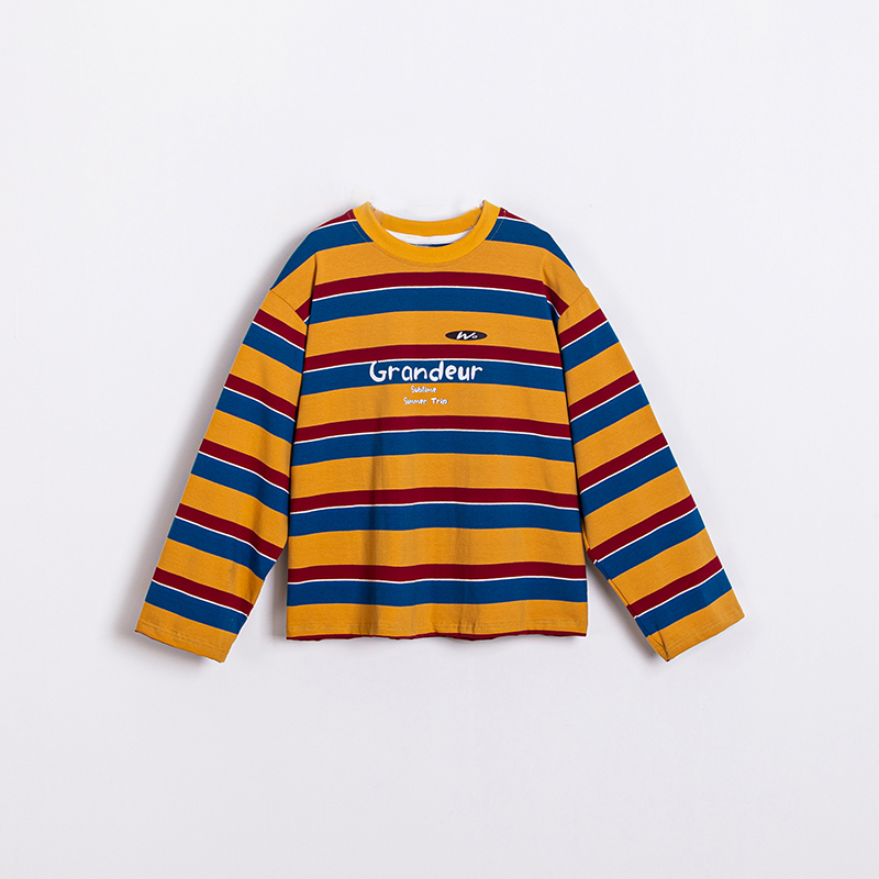 MSYJ 彩虹条纹T恤原创女童秋季长袖中大童圆领上衣宽松休闲新款