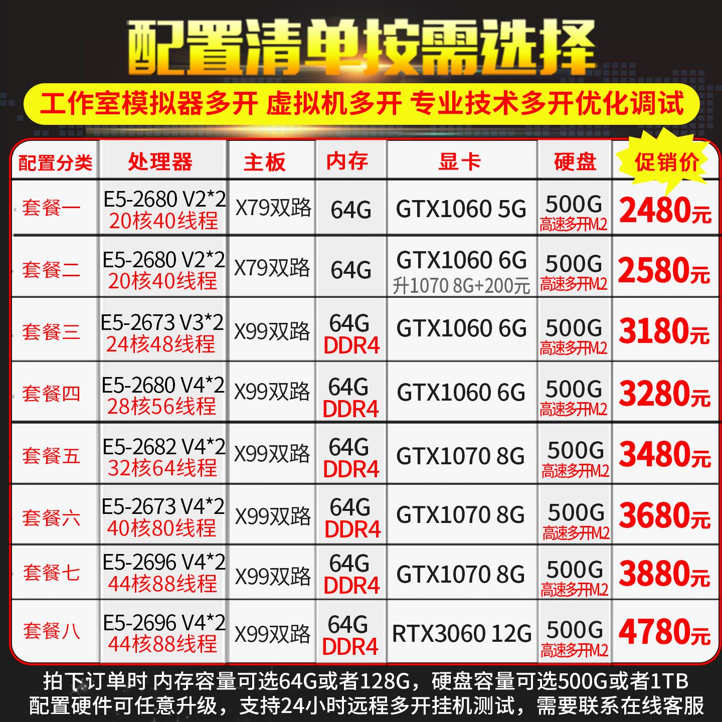 双路E5主机44核88线程服务器虚拟机模拟器手游多开电脑主机组装机