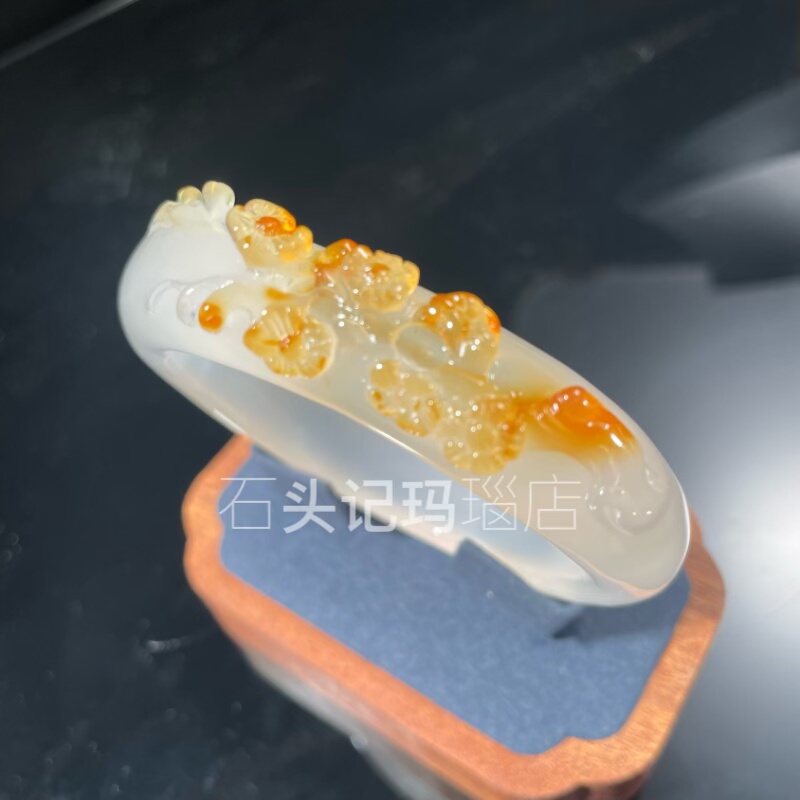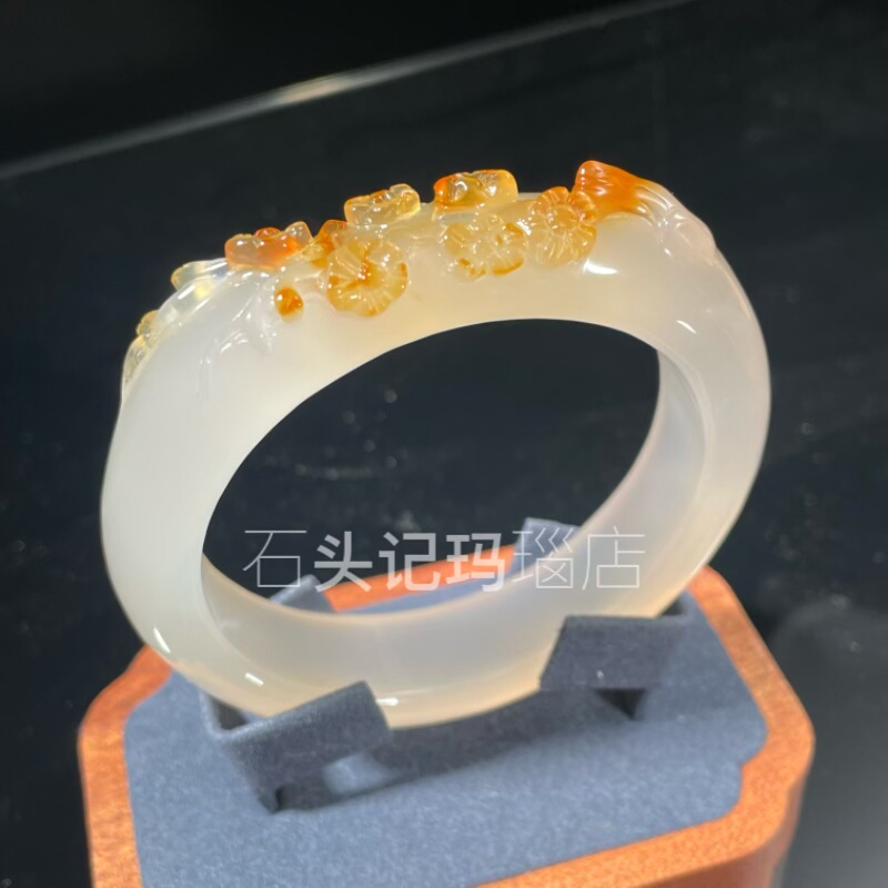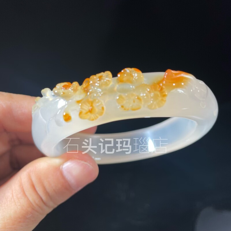 天然玛瑙俏色巧雕梅花手镯精工雕刻玉髓手环玉镯女生饰品送礼佳