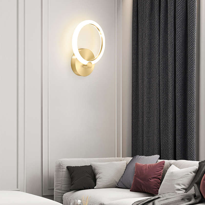 轻奢卧室壁灯现代简约圆形创意个性led客厅过道背景墙金色床头灯