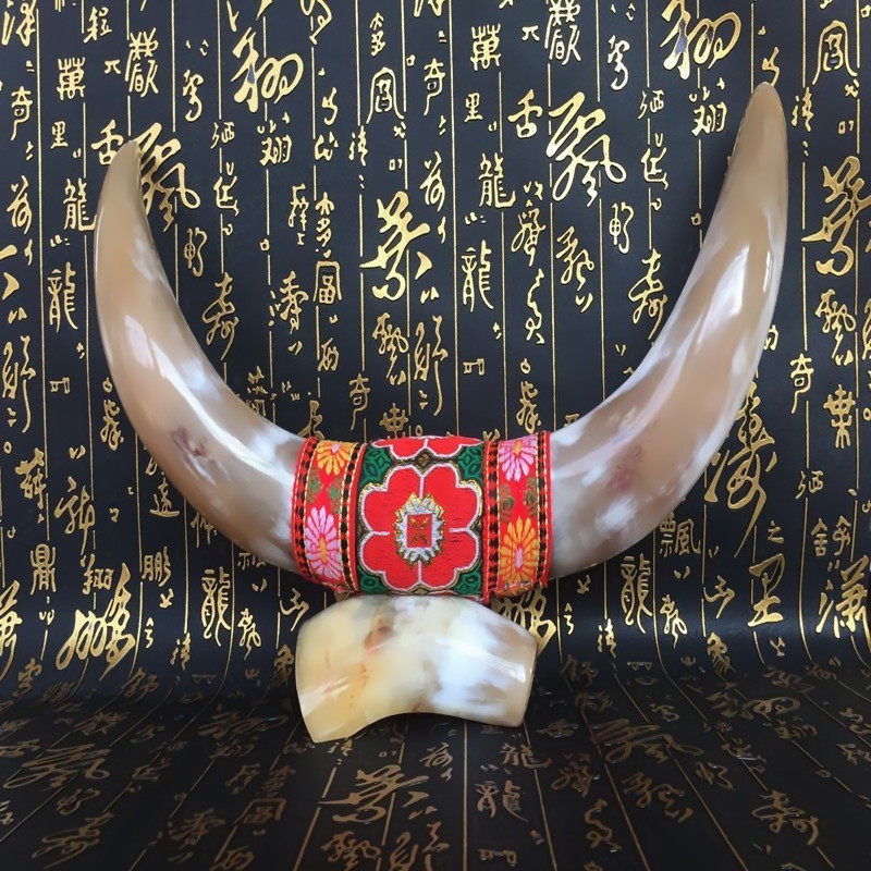 精品牛角动物摆件工艺酒饭v店复古怀旧办公室装饰饭店股市商务礼