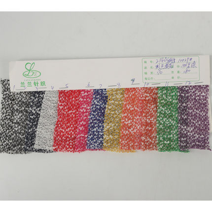 现货针织竹节色织单面提花布全涤大肚纱双色提花180克休闲服装运