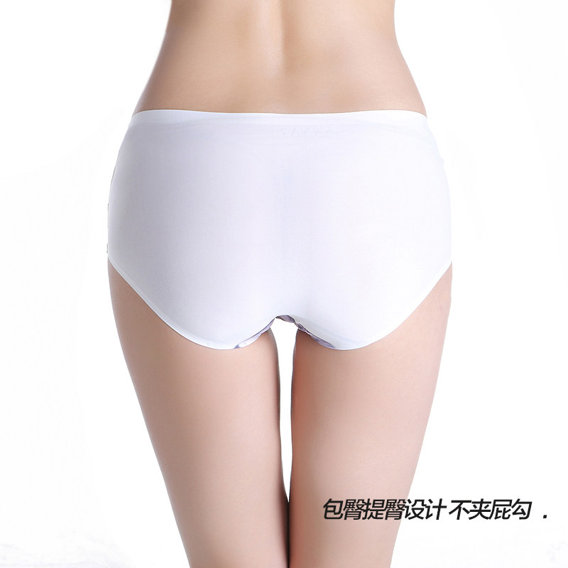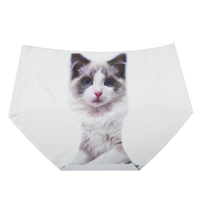 【7条精装】可爱猫咪印花性感提臀学生少女一片式冰丝无痕内裤女
