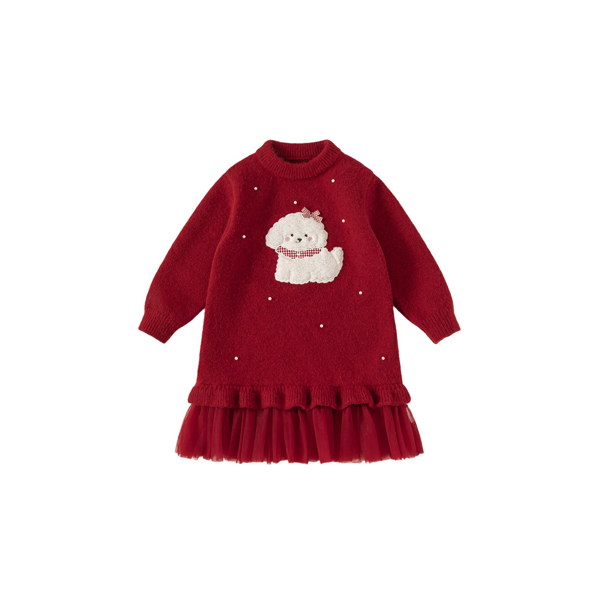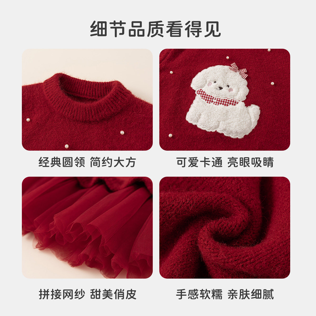 女童连衣裙儿童红色裙子冬季新款宝宝新年毛衣裙过年冬装好看童装