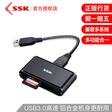 SSK飚王 商务SCRM630 高速USB3.0多功能读卡器直读SD CF TF多合一