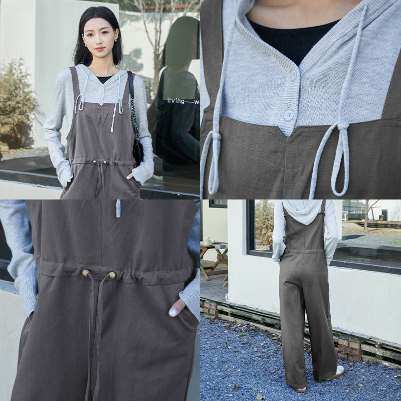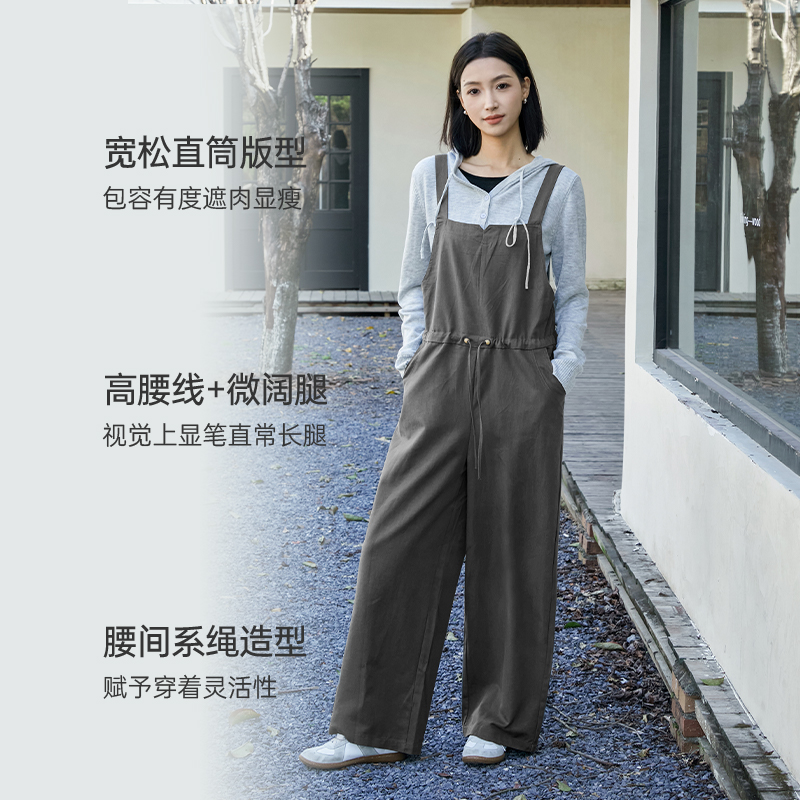 北欧时刻复古灰色休闲背带裤女春季新款宽松连体裤子直筒阔腿长裤