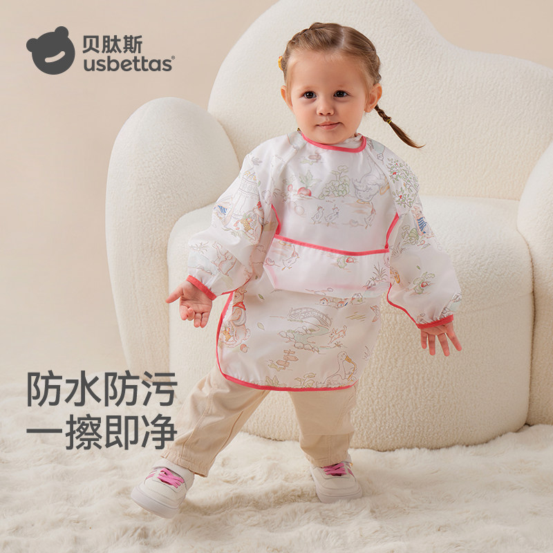贝肽斯宝宝吃饭围兜防水防脏儿童罩衣婴儿辅食饭兜幼儿园反穿衣
