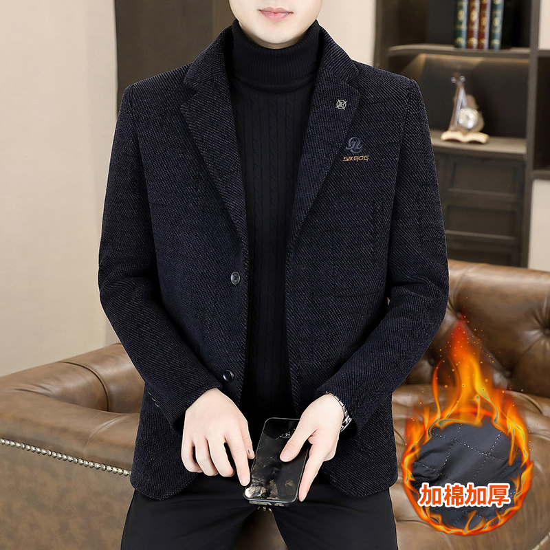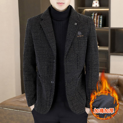 男士毛呢西服秋冬季加厚2025新款青年高端双扣休闲小西装外套单件