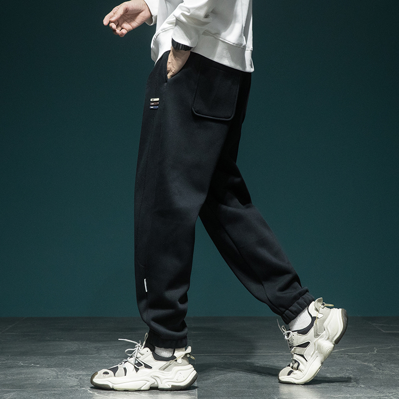 日系重磅卫裤子男秋季新款设计感摇粒绒运动裤加绒宽松大码休闲裤
