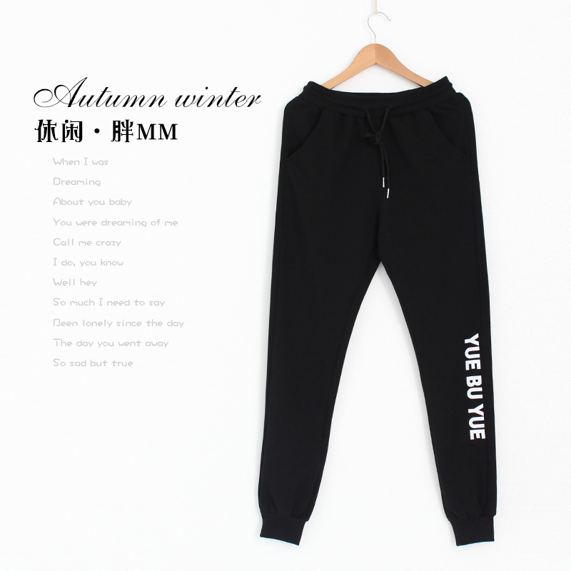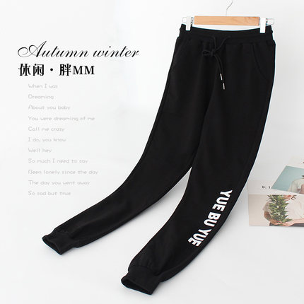 加肥加大码秋冬加绒运动裤女裤子胖mm宽松哈伦裤200斤休闲卫裤女