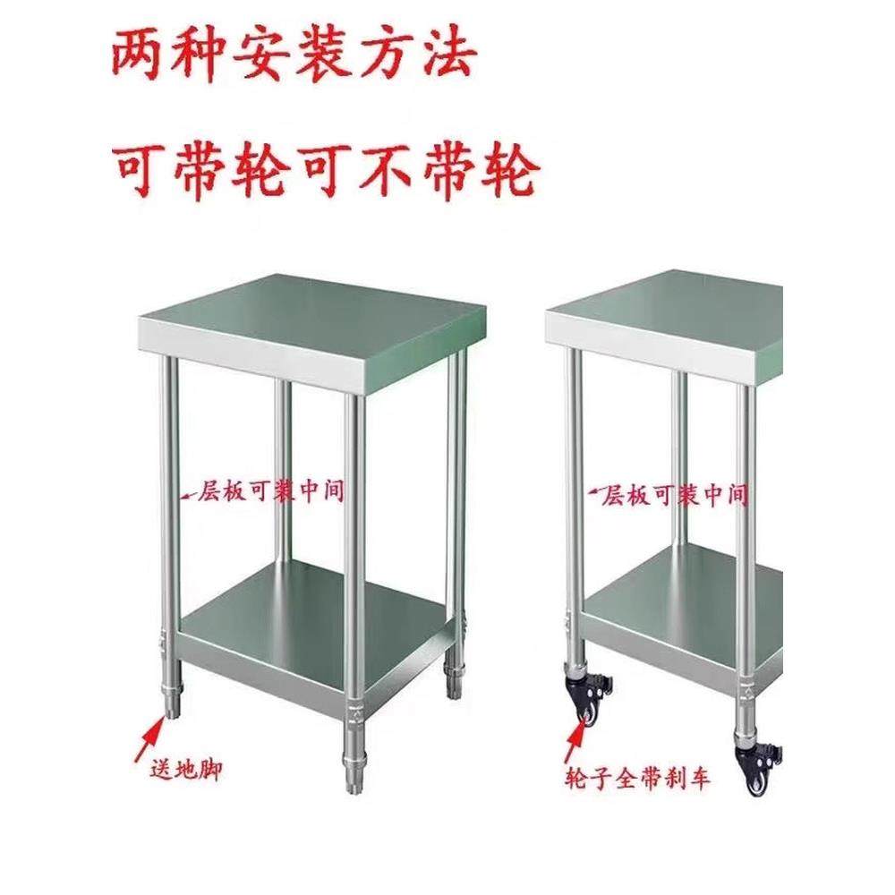 万向轮不锈钢置物工作台可移动操作台多功能小桌带轮子厨房收纳架