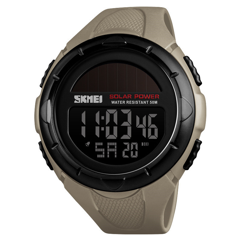 时刻美防水电子表户外运动时尚多功能太阳能辅助供电男士手表