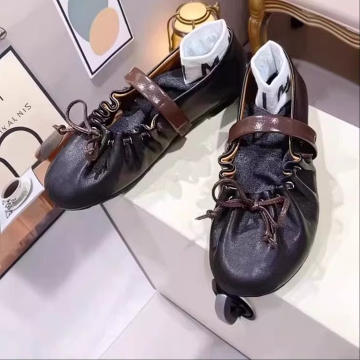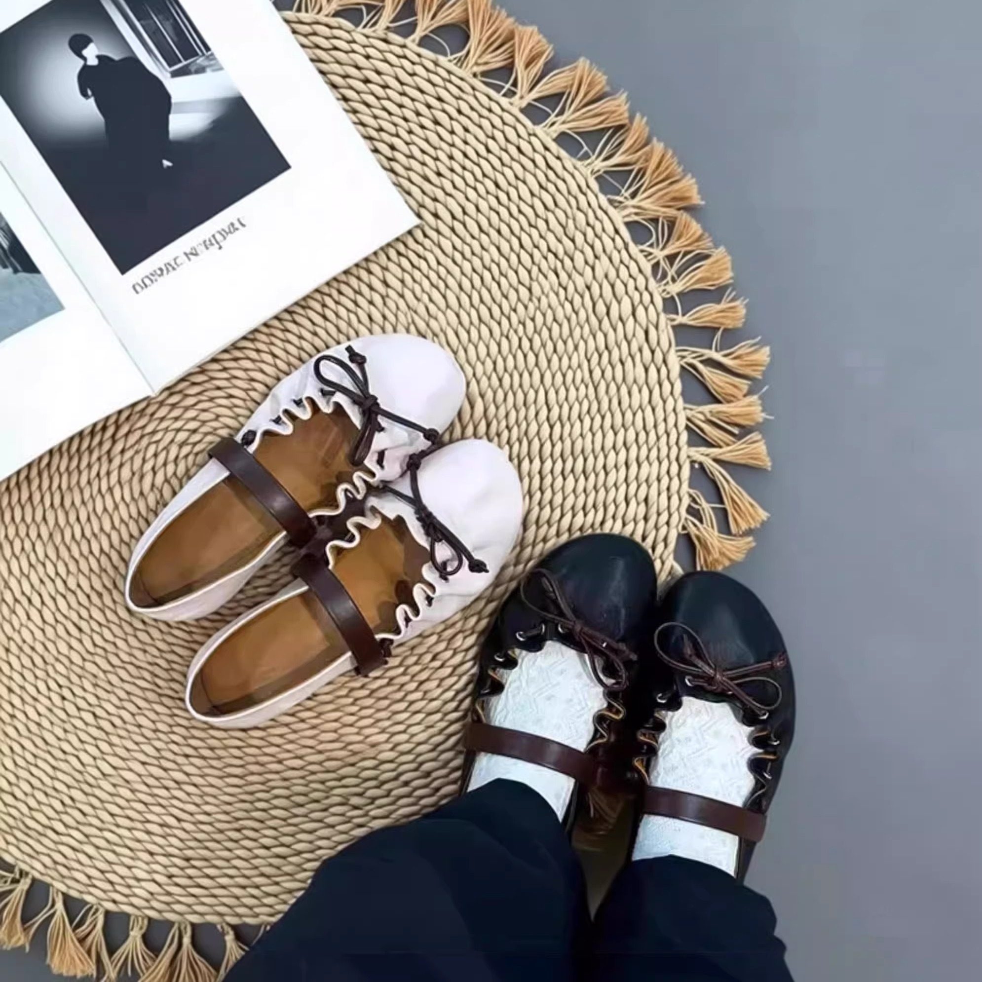 温柔褶皱蝴蝶结单鞋女2026春新款软底芭蕾舞平底浅口法式玛丽珍鞋