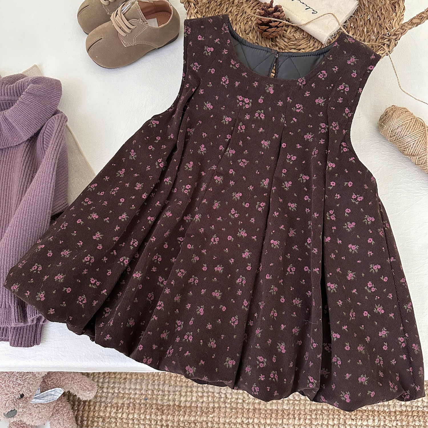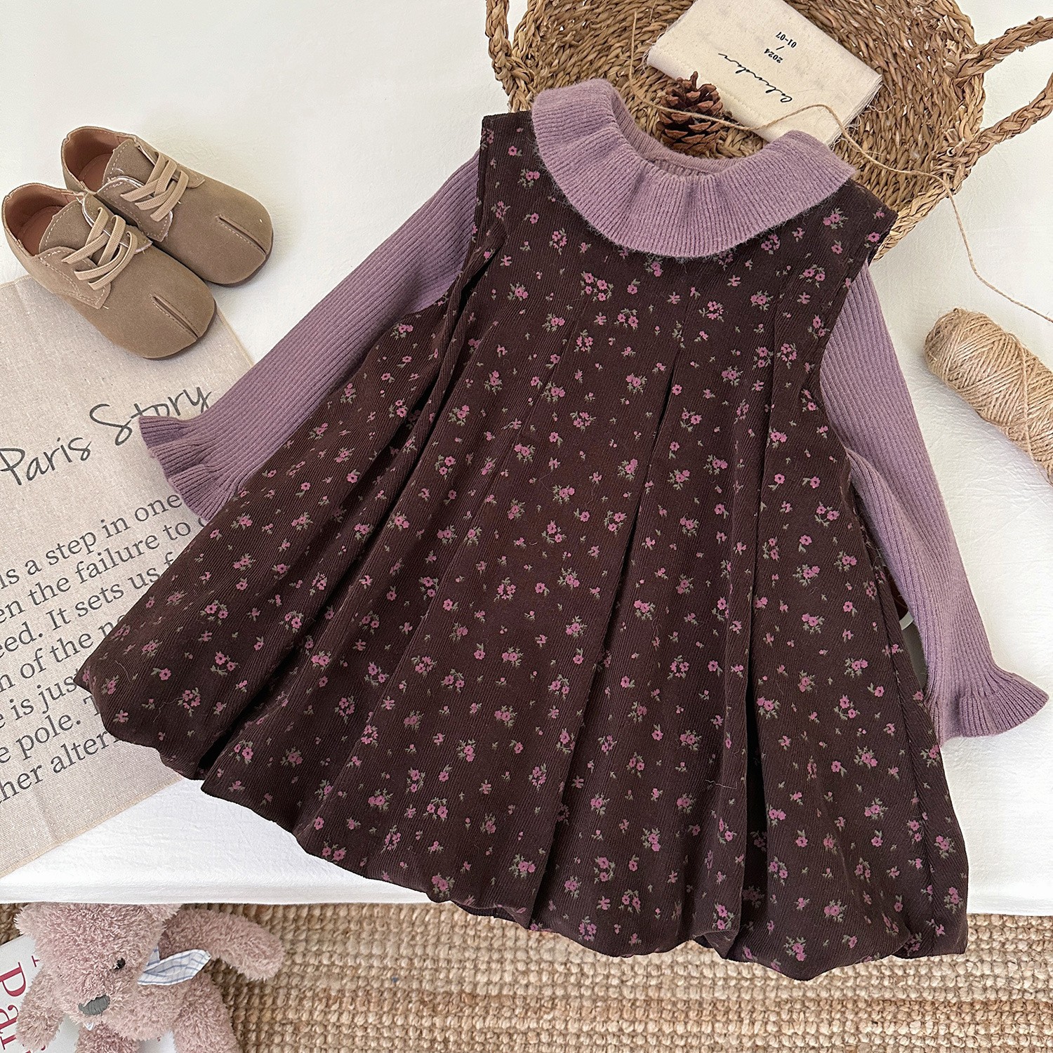 女童2025新款秋冬荷叶毛衣宝宝洋气加棉加厚保暖碎花背心裙两件套