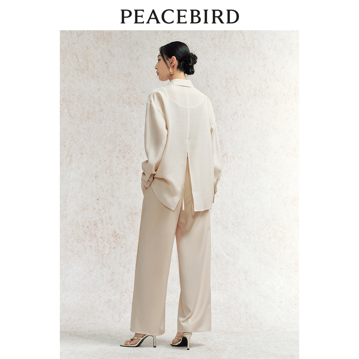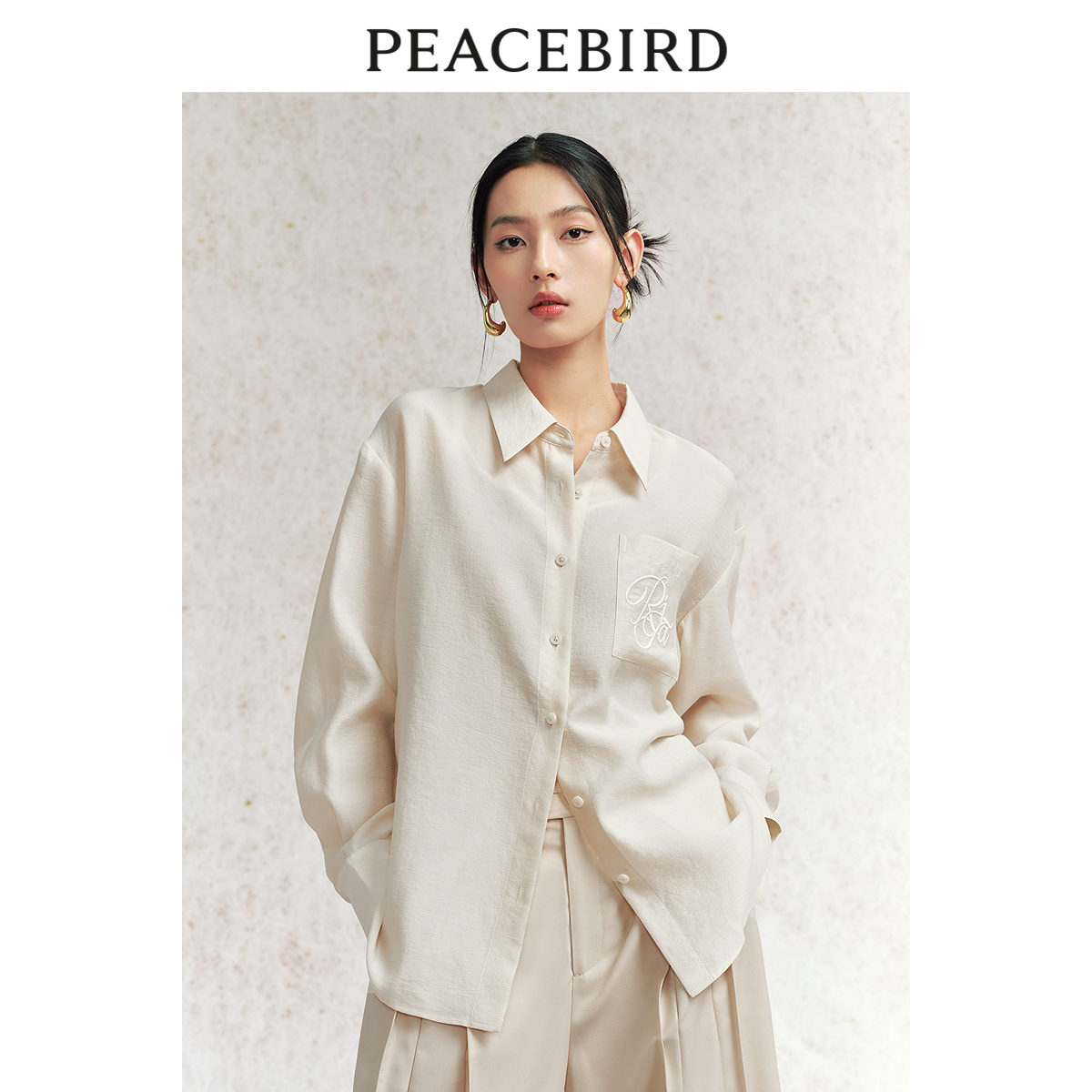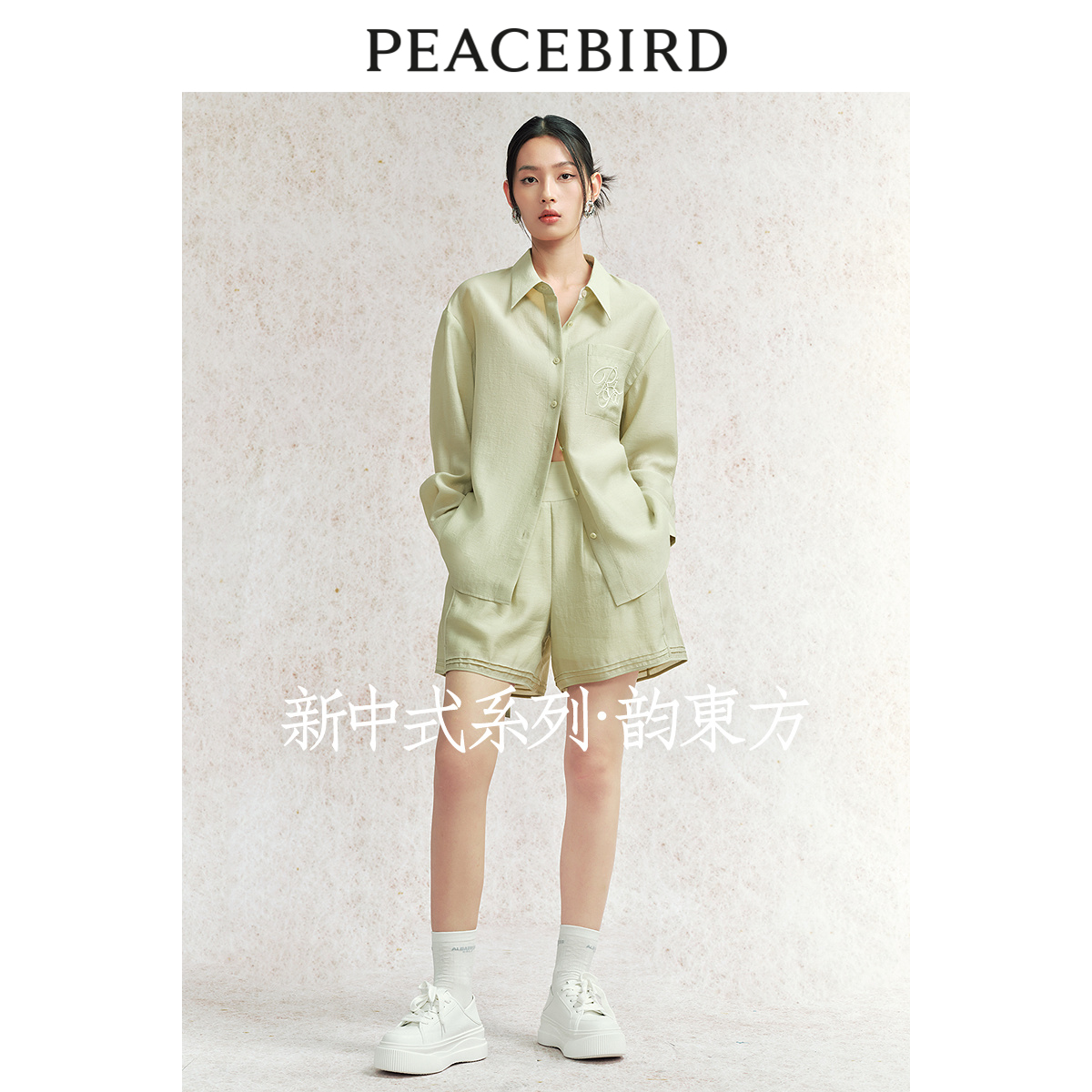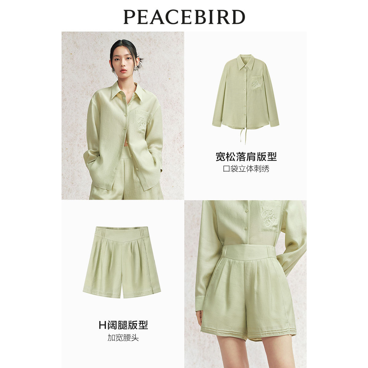 太平鸟国风莱赛尔品质衬衫2025秋季新款立体刺绣后背开叉衬衣套装
