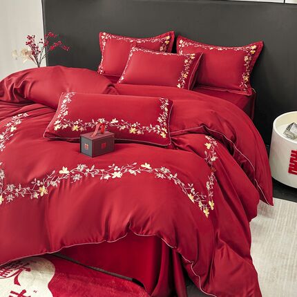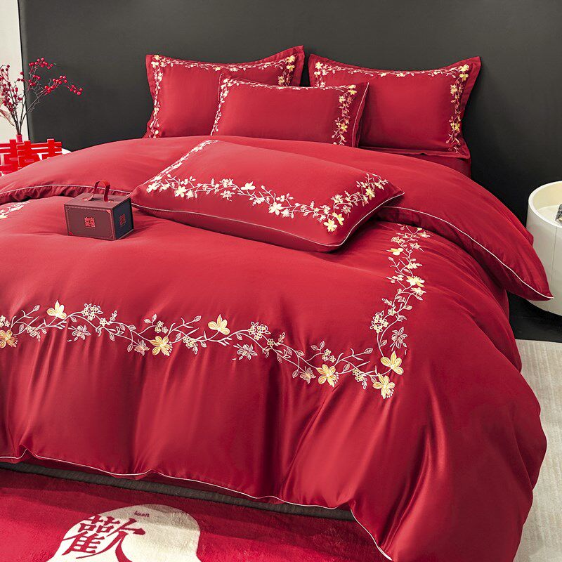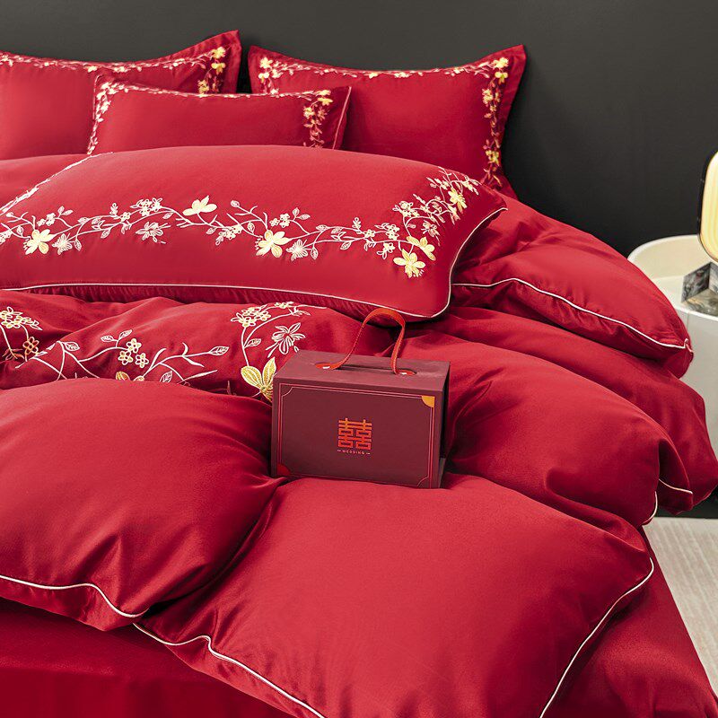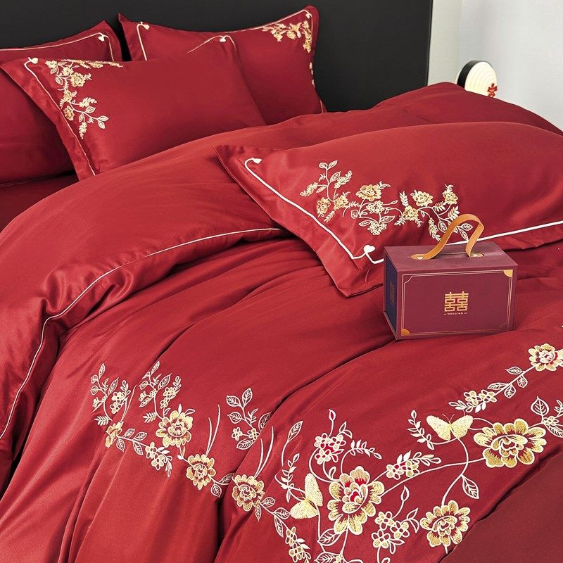 冬季加厚婚庆四件套磨毛水洗棉床单F婚嫁红色被套床上高档婚房套