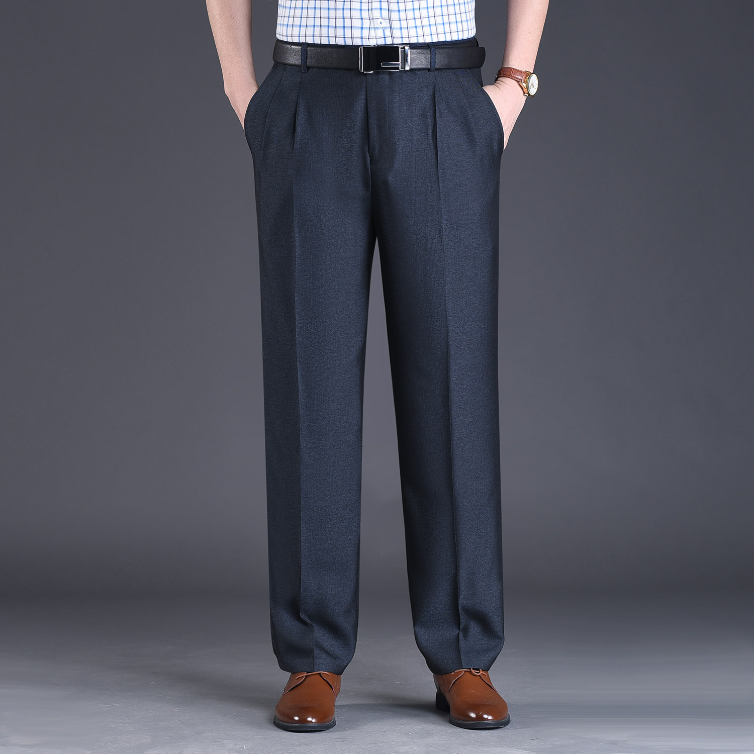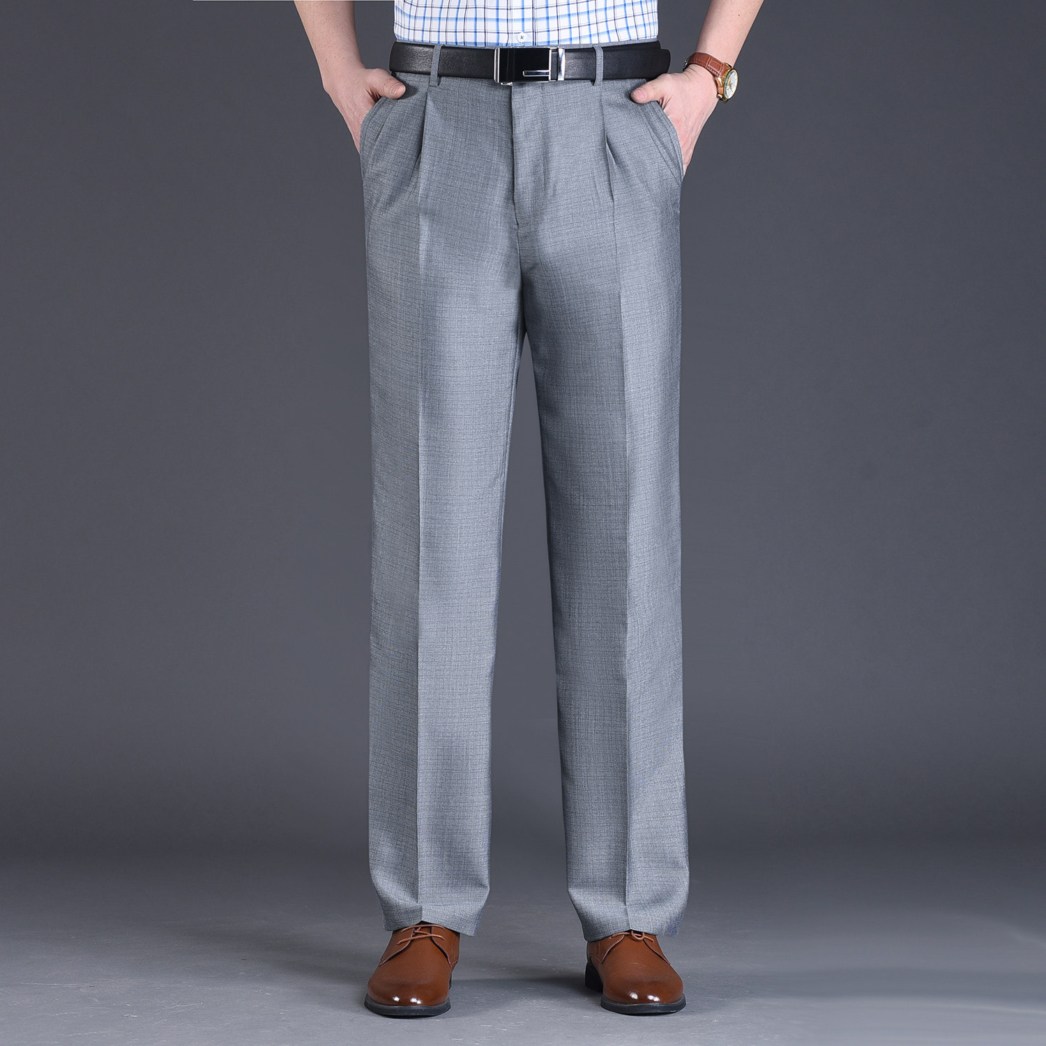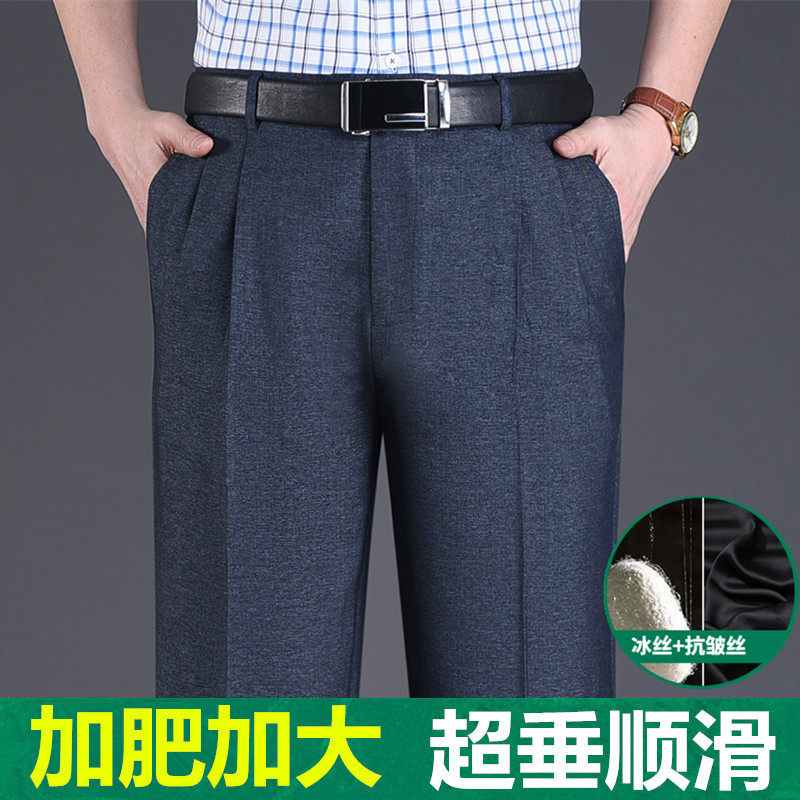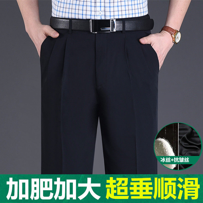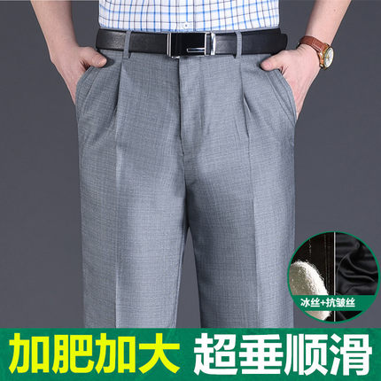 春夏薄款加肥加大桑蚕丝西裤中老年男大码宽松商务休闲肥佬阔腿裤
