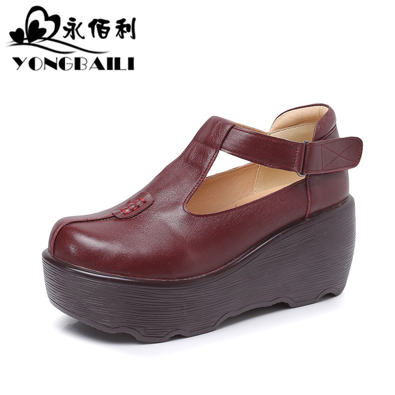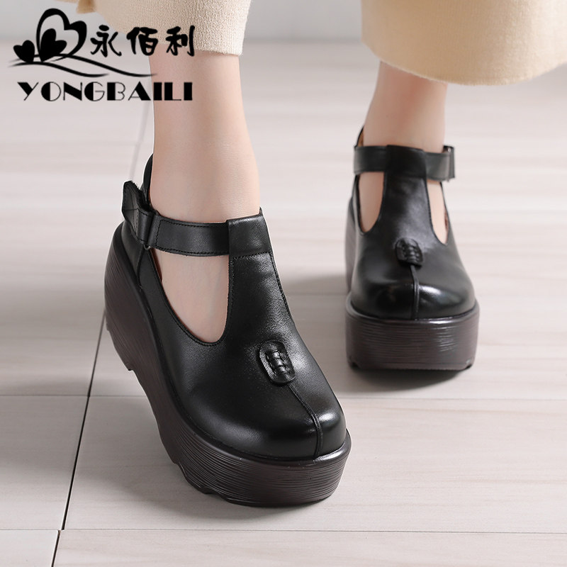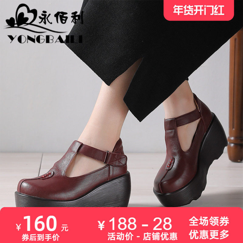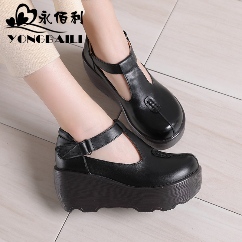 松糕鞋女2025春新款厚底鞋真皮头层牛皮坡跟圆头休闲单鞋女鞋皮鞋