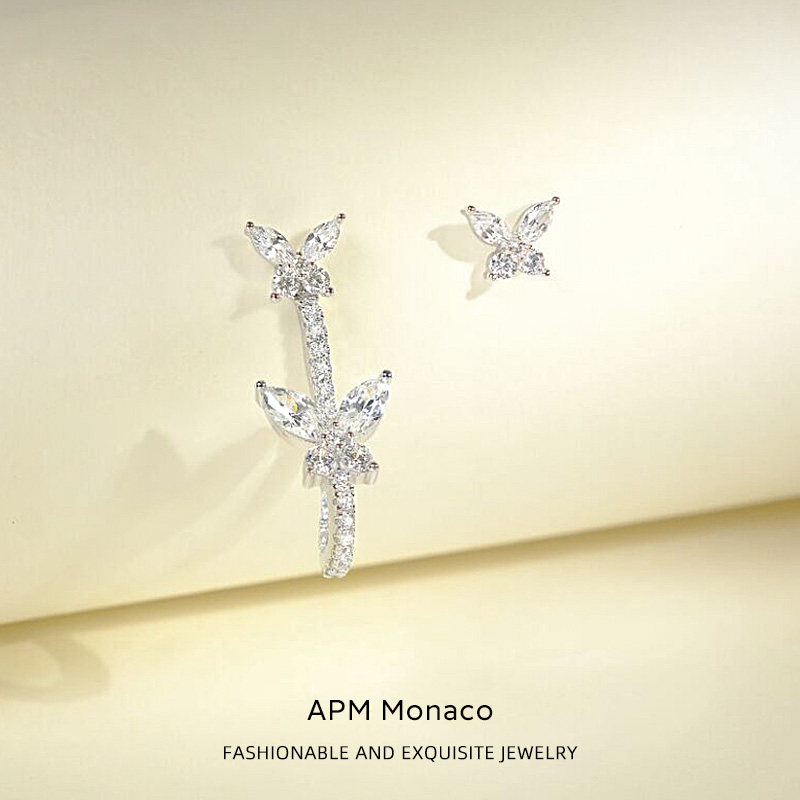 APM Monaco不对称蝴蝶耳钉女银简约设计感耳饰女生礼物生日礼物