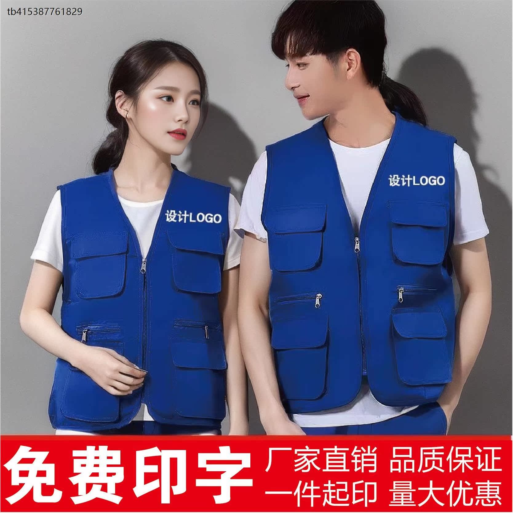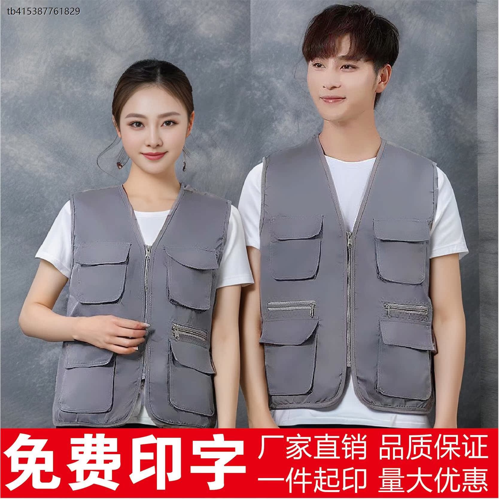 多口袋V领工作服马甲定制志愿者背心印字旅行摄影广告工装印logo