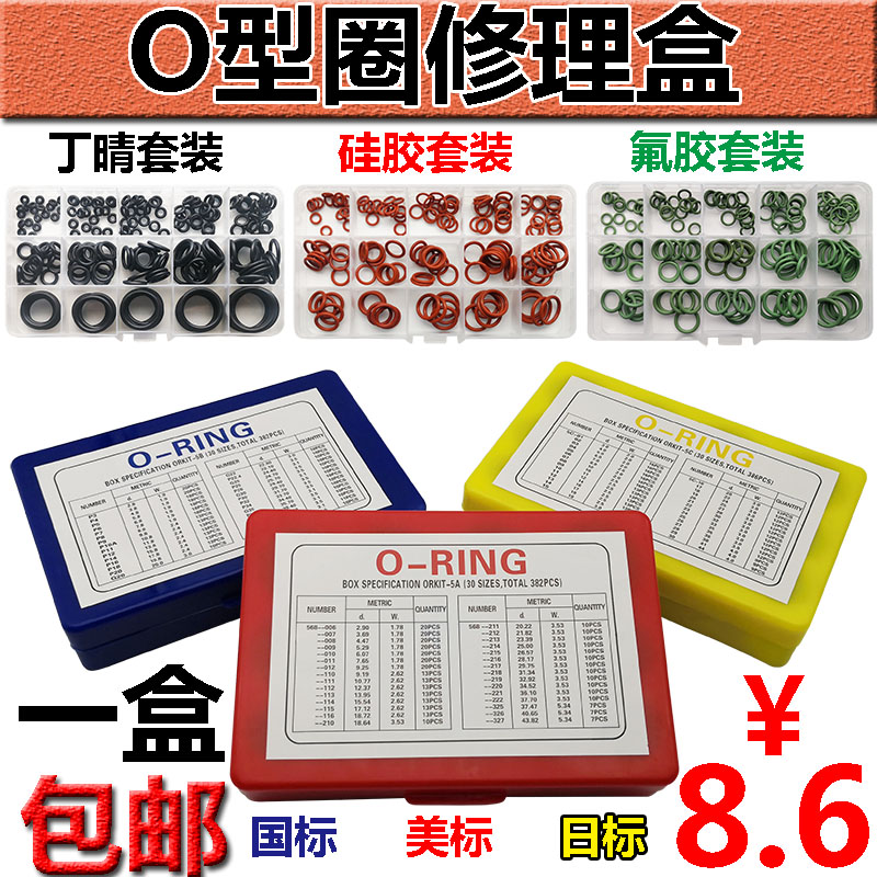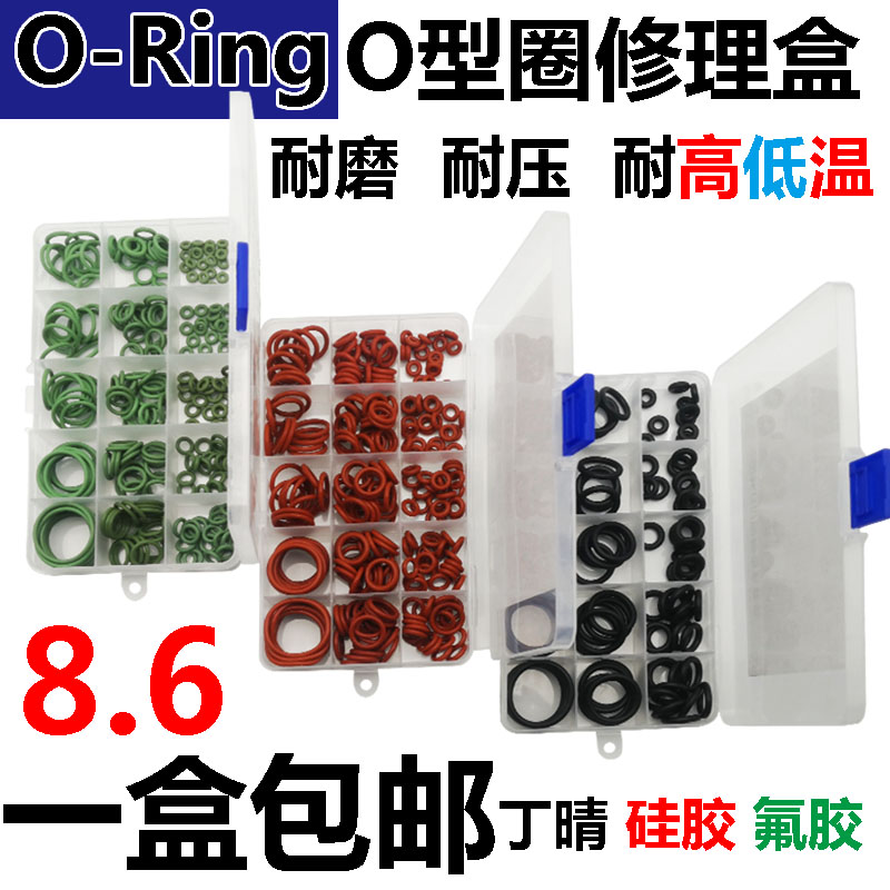 包邮耐油高温O型圈修理盒防水密封圈硅胶丁晴氟橡胶o形环皮圈套装