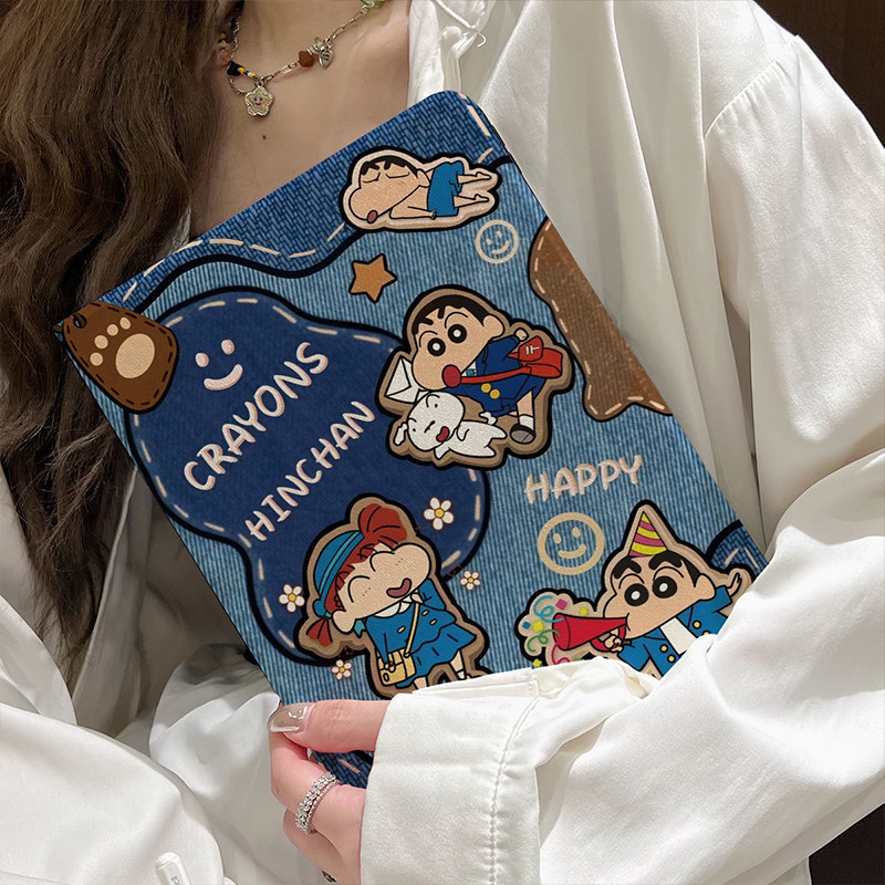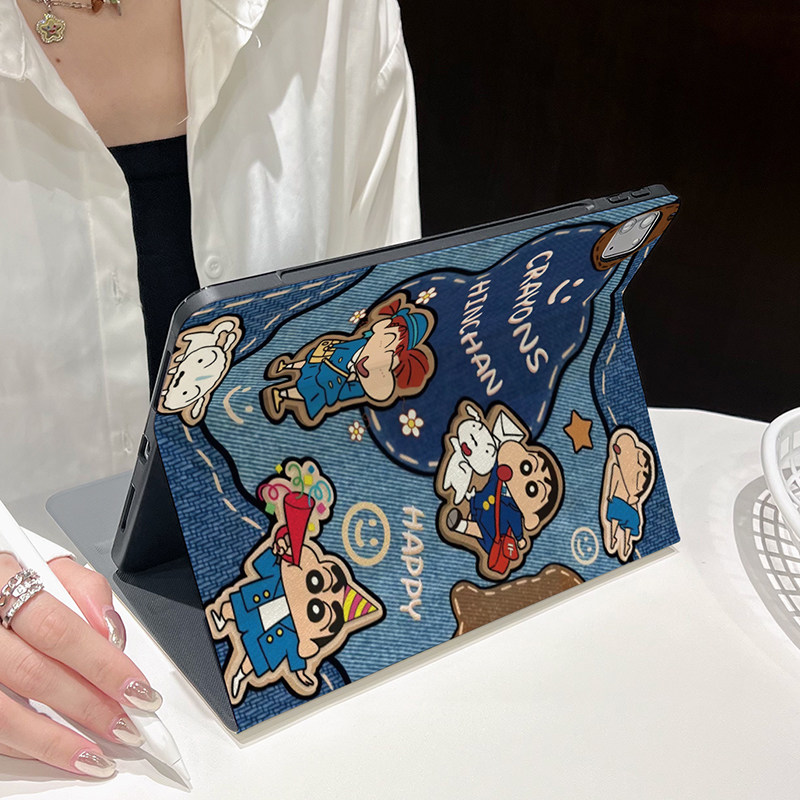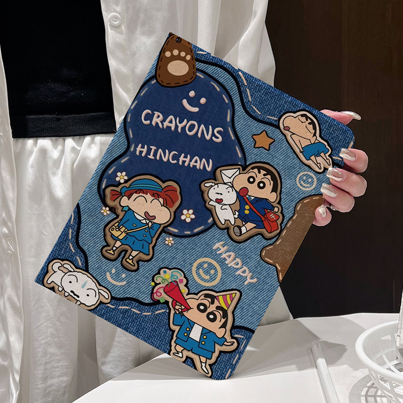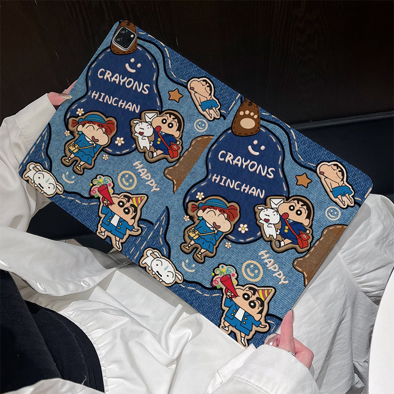 复古牛仔风蜡笔小新iPad10保护套第789代儿童air6硅胶5防摔2025新款pro11寸软壳mini7卡通9.7寸适用十代可爱4