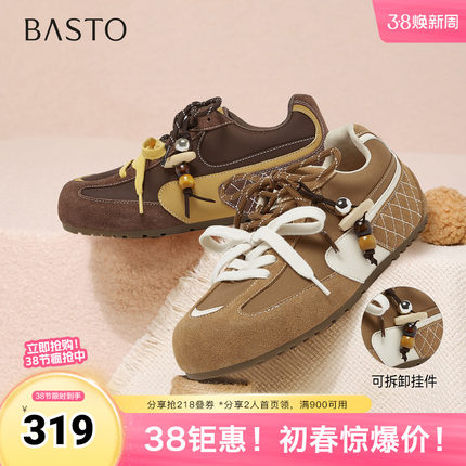百思图2026春季新款商场同款德训鞋时髦复古女运动休闲鞋A6621AM6