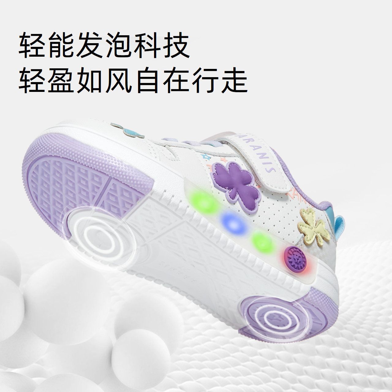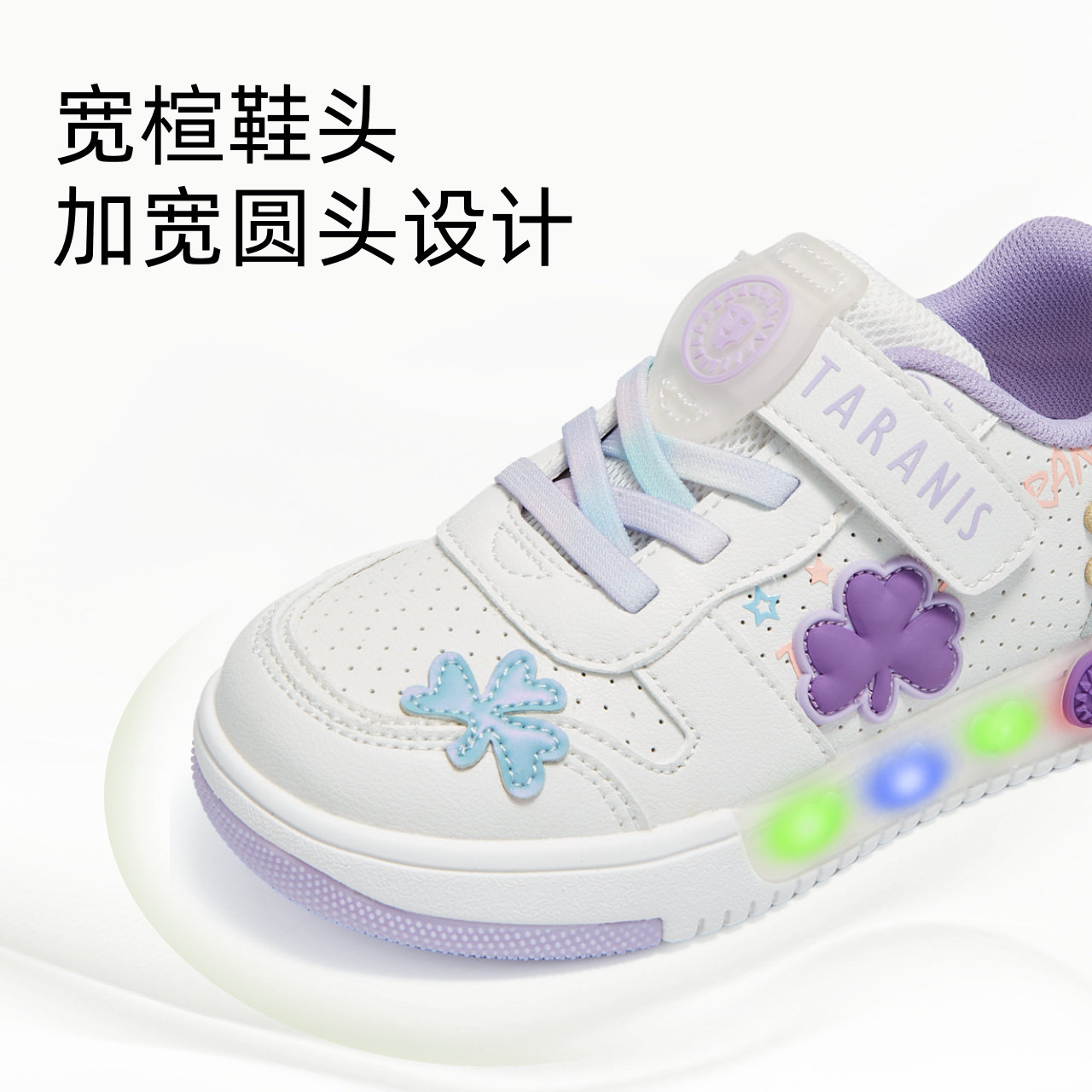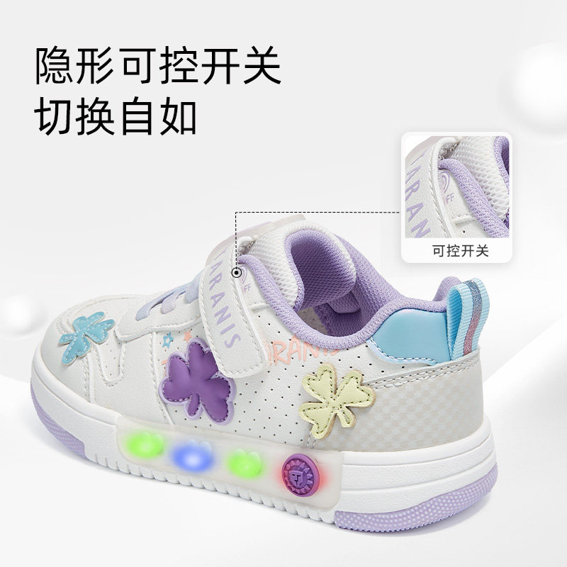 泰兰尼斯闪灯鞋春季款时尚板鞋男童舒适软底休闲鞋女童闪灯板鞋