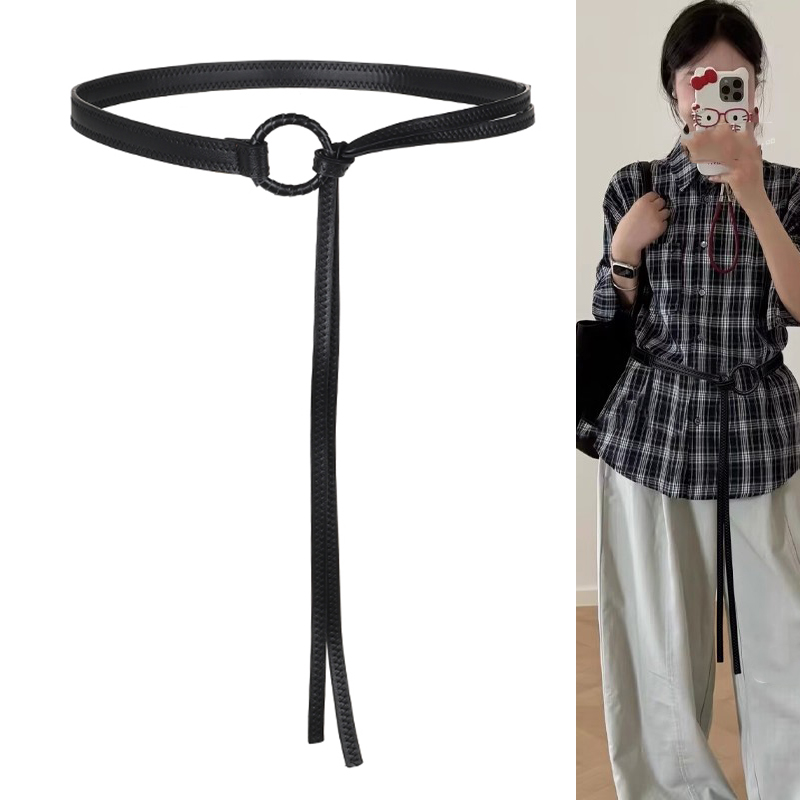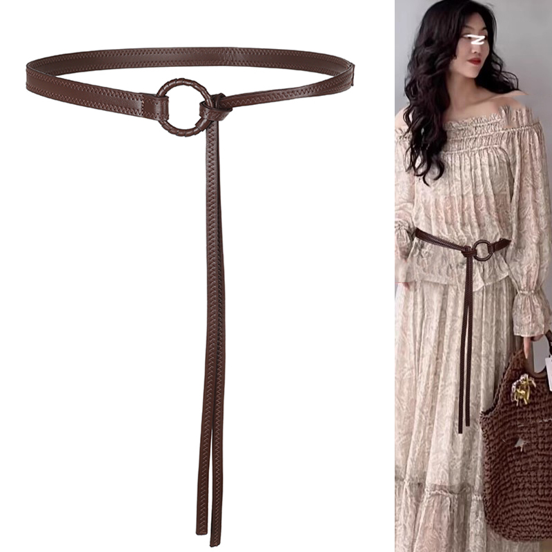 咖啡色腰带配饰女高级感装饰配牛仔裤裙子美式复古细皮带2025新款