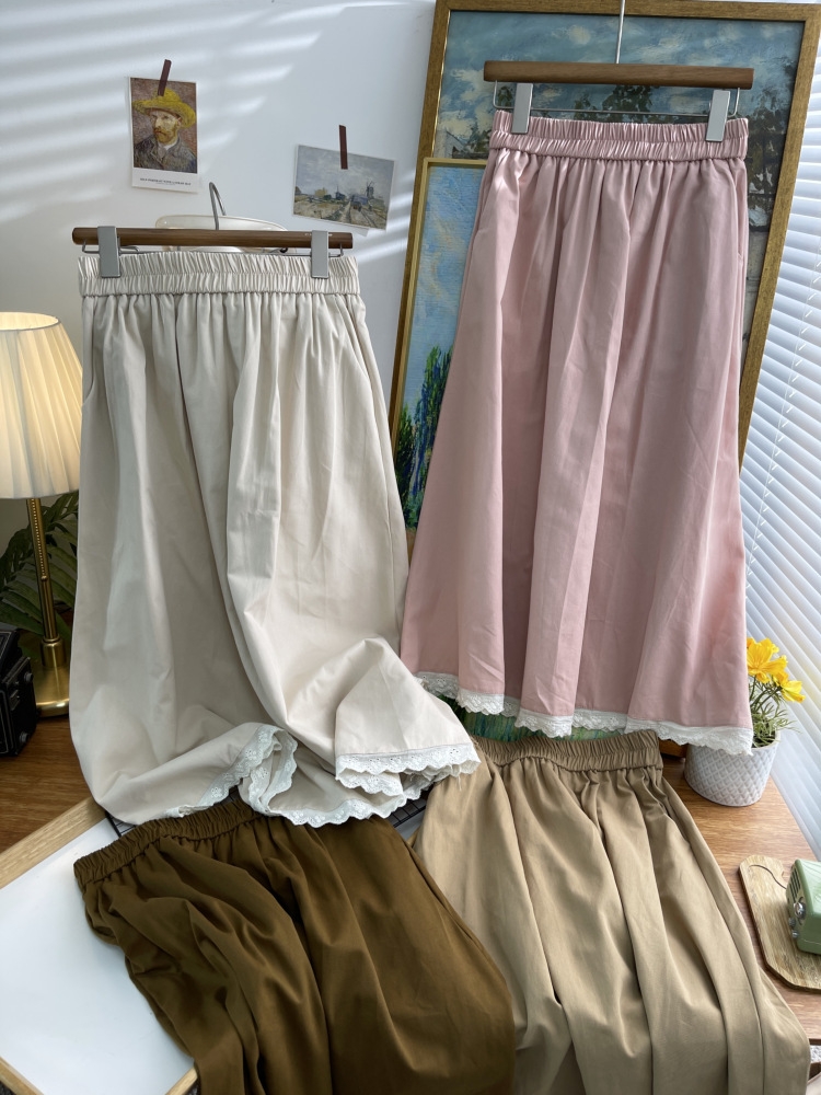 春秋棉质中长款半身裙子女日韩森系复古学院风松紧腰a字百搭显瘦