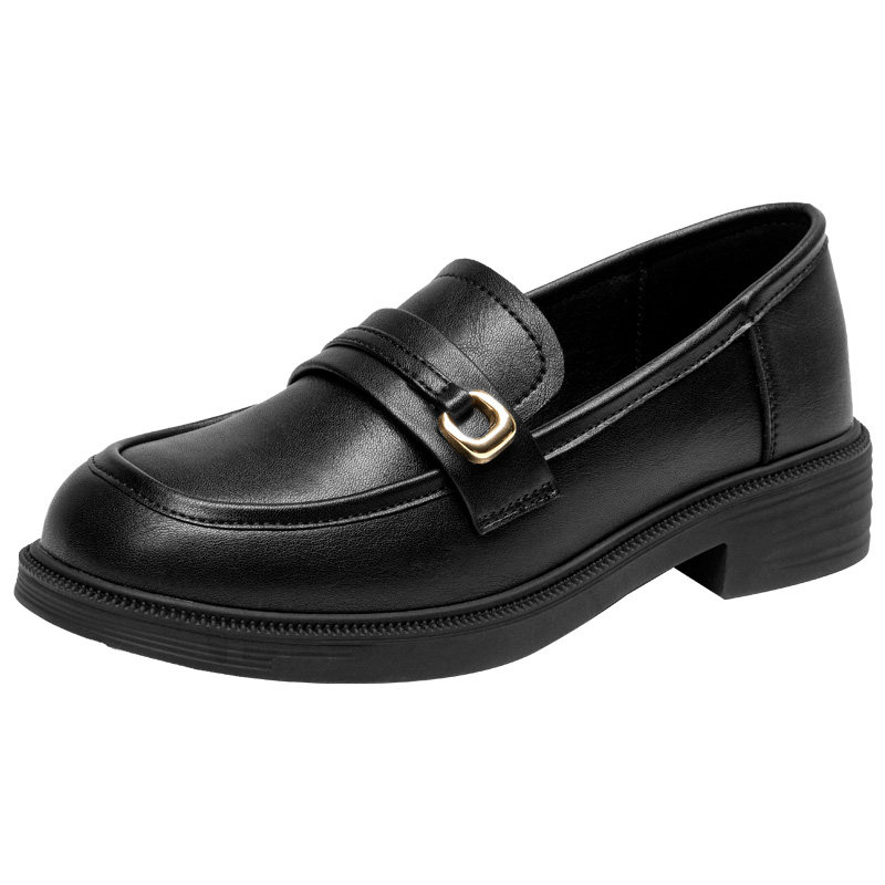 大东黑色乐福鞋女2025新款冬季软底通勤单鞋英伦风粗跟小皮鞋女鞋