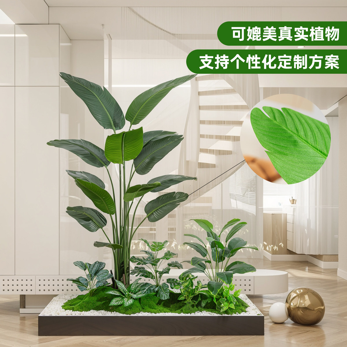 仿真绿植造景观室内橱窗楼梯下仿生花定制场景装饰布置假树植物