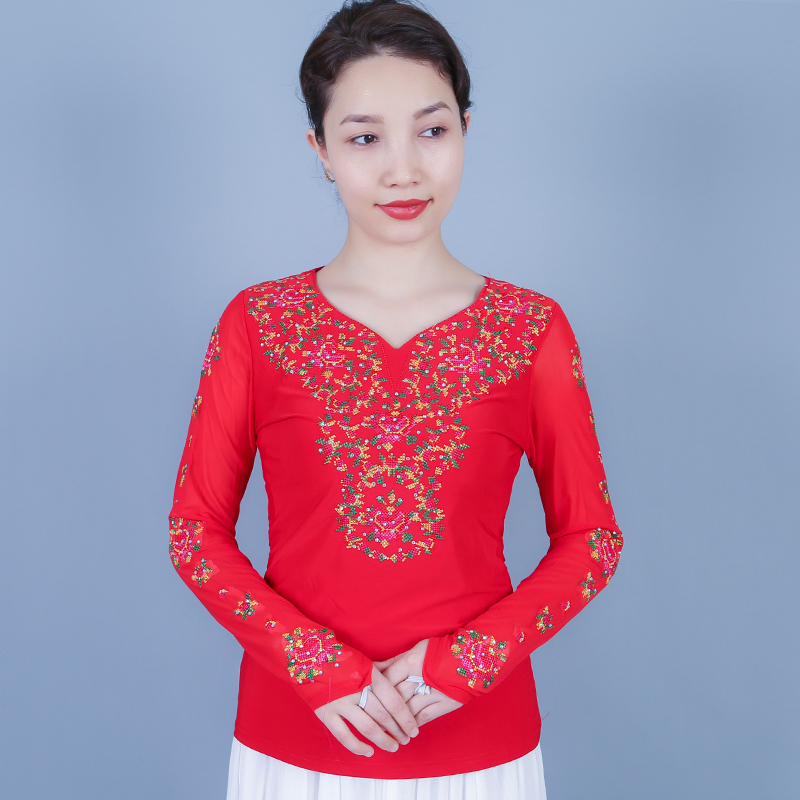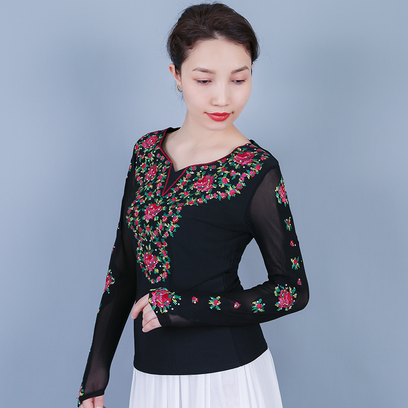 新疆舞上衣艺考生练功服民族风绣花打底衫新款广场舞服维族舞服装