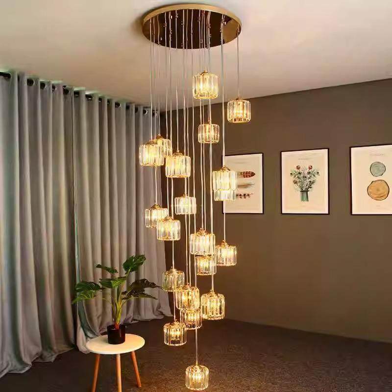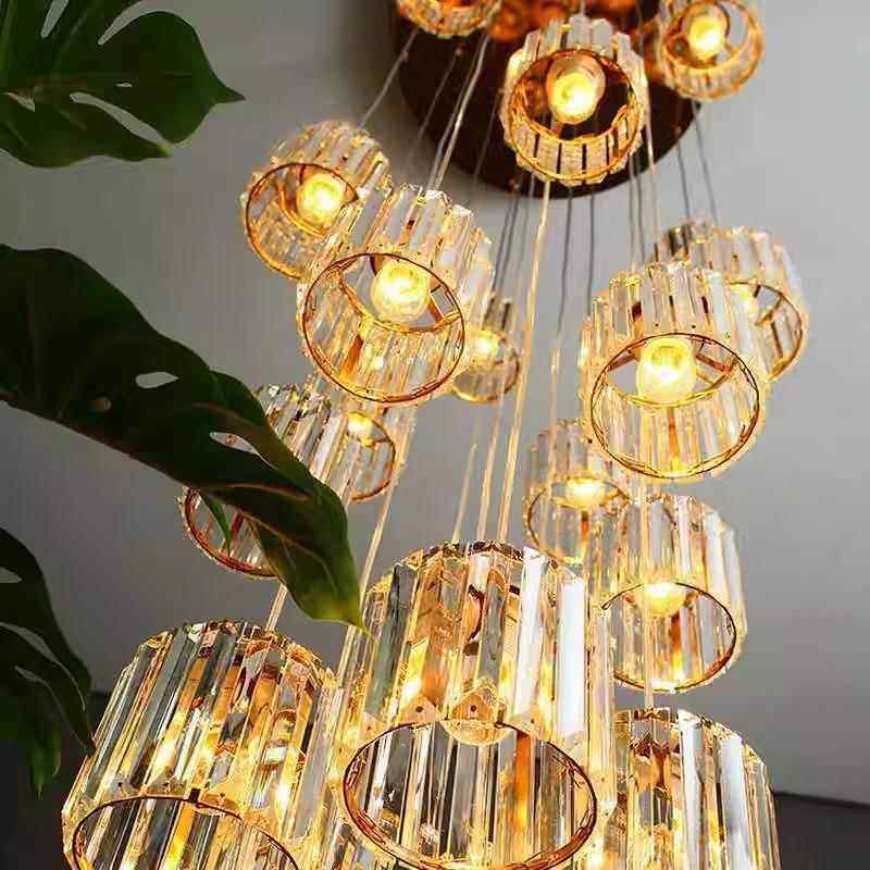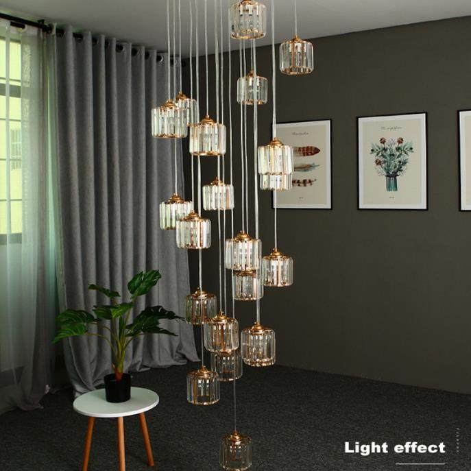 202新款简现代复式旋转楼梯灯led水晶客厅69752约吸顶4吊灯侧墙楼