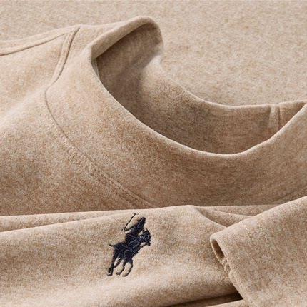 羊毛蚕丝绒半高领打底衫男冬季保暖内搭中领长袖T恤潮牌刺绣上衣