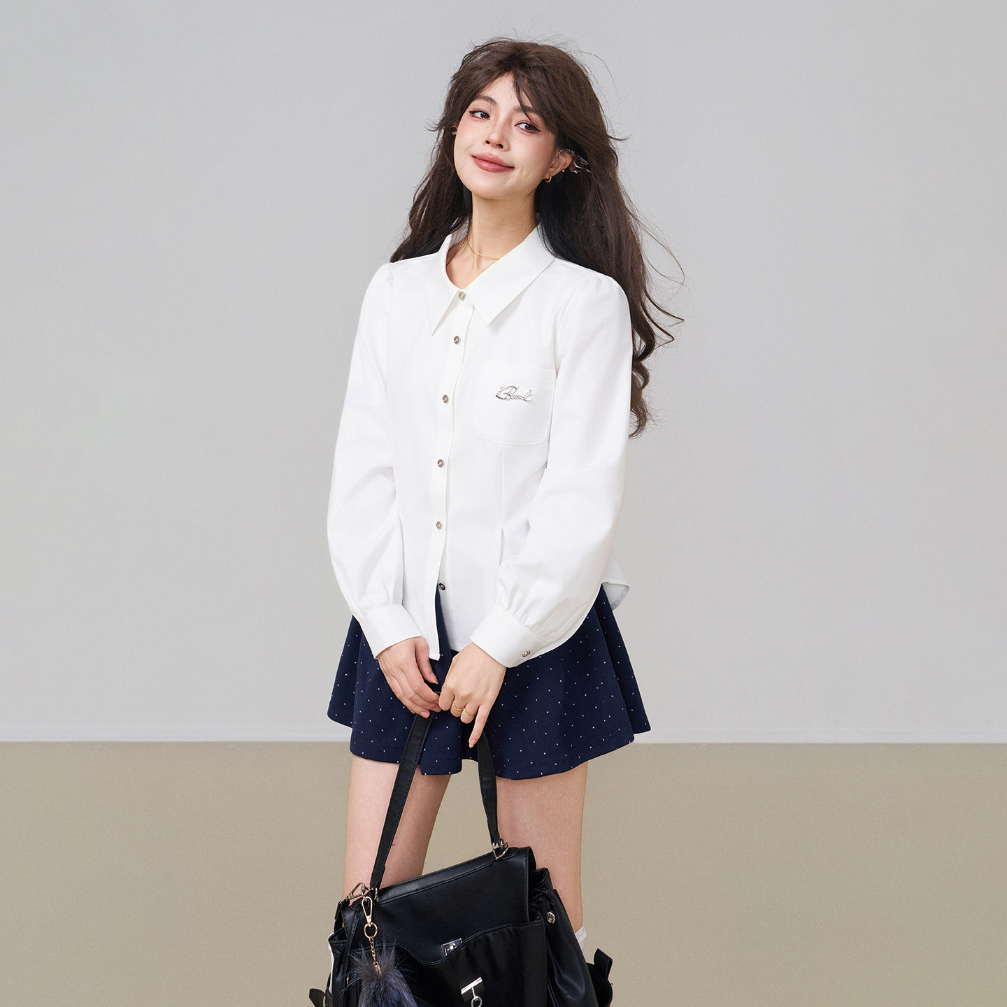 KEIKO 立体剪裁收腰白色衬衫女2026春季高级感挺括抗皱打底衬衣