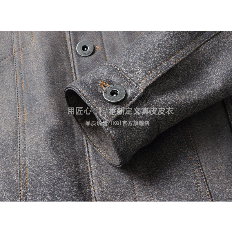 真皮皮衣男牛皮夹克男牛仔风格oversize翻领时尚落肩外套潮66-109