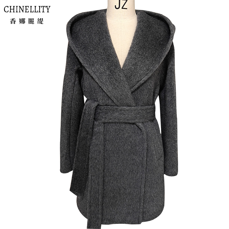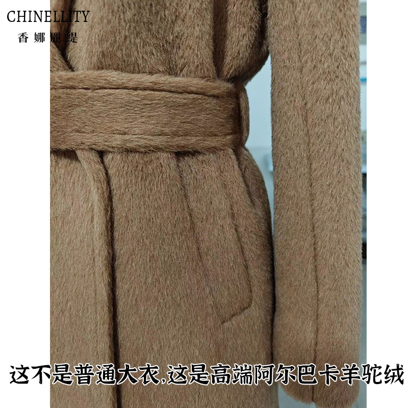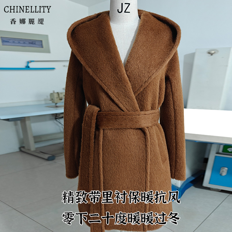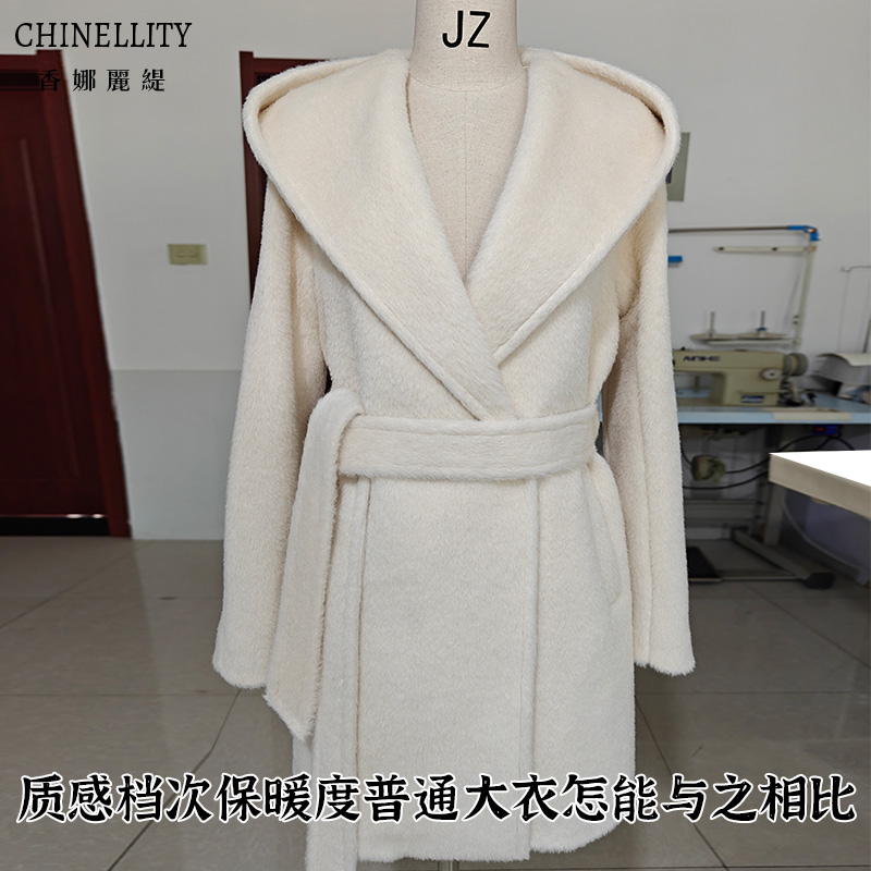 连帽加厚羊驼绒阿尔巴卡高端带里衬白色短款大衣超保暖毛呢外套女