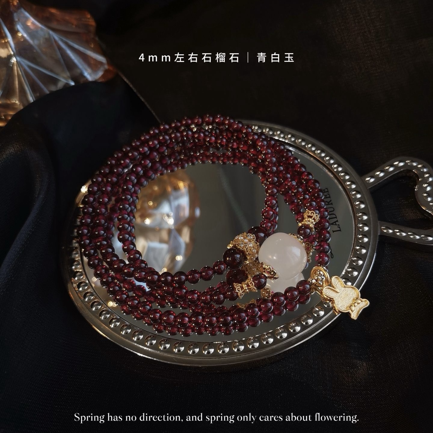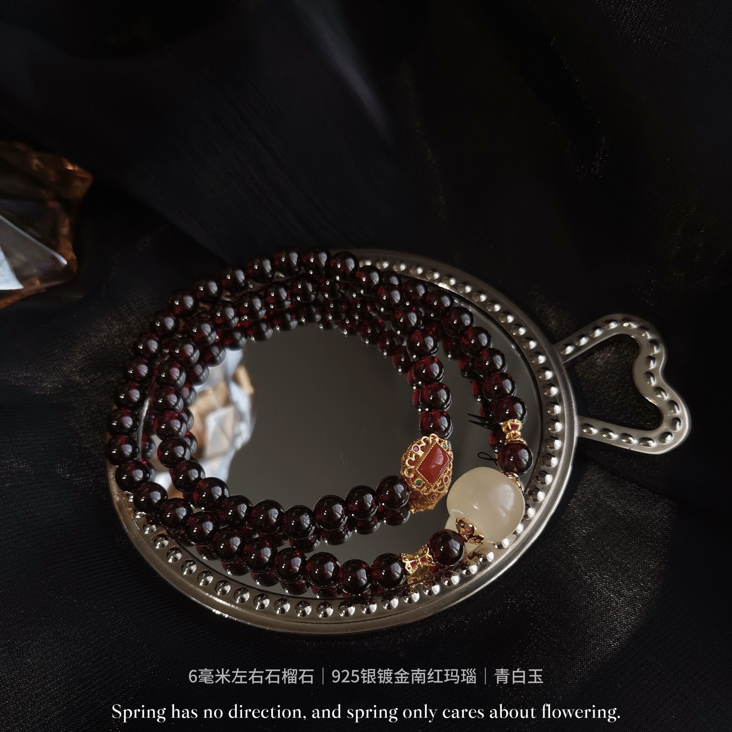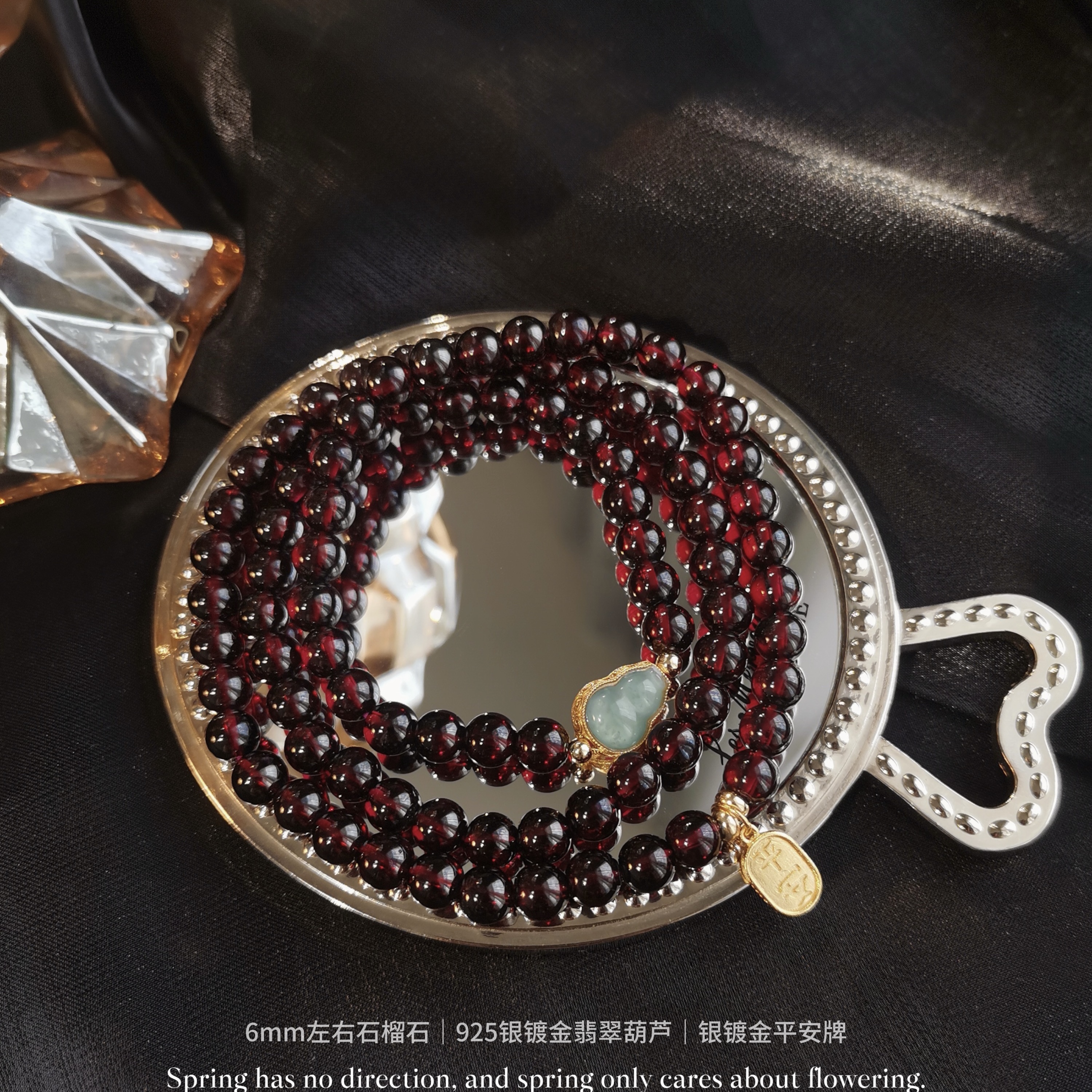 天然石榴石手链女款轻奢小众精致手串送女友闺蜜礼物本命年配证