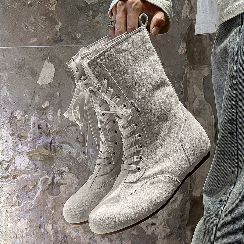 通勤高帮马丁靴男女同款帆布牛仔靴系带平底拳击靴圆头靴子男潮款