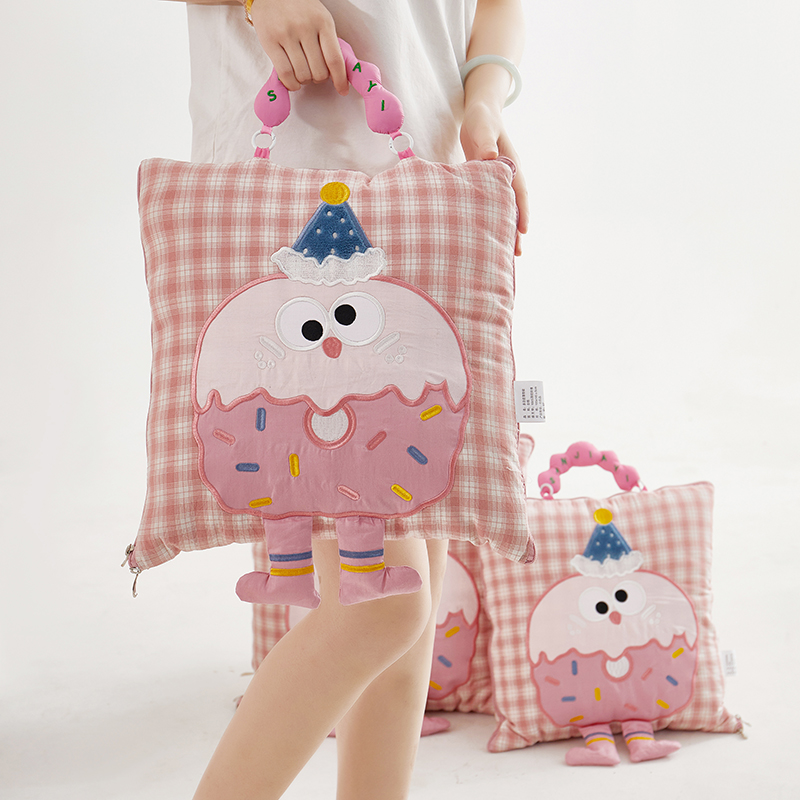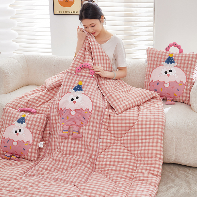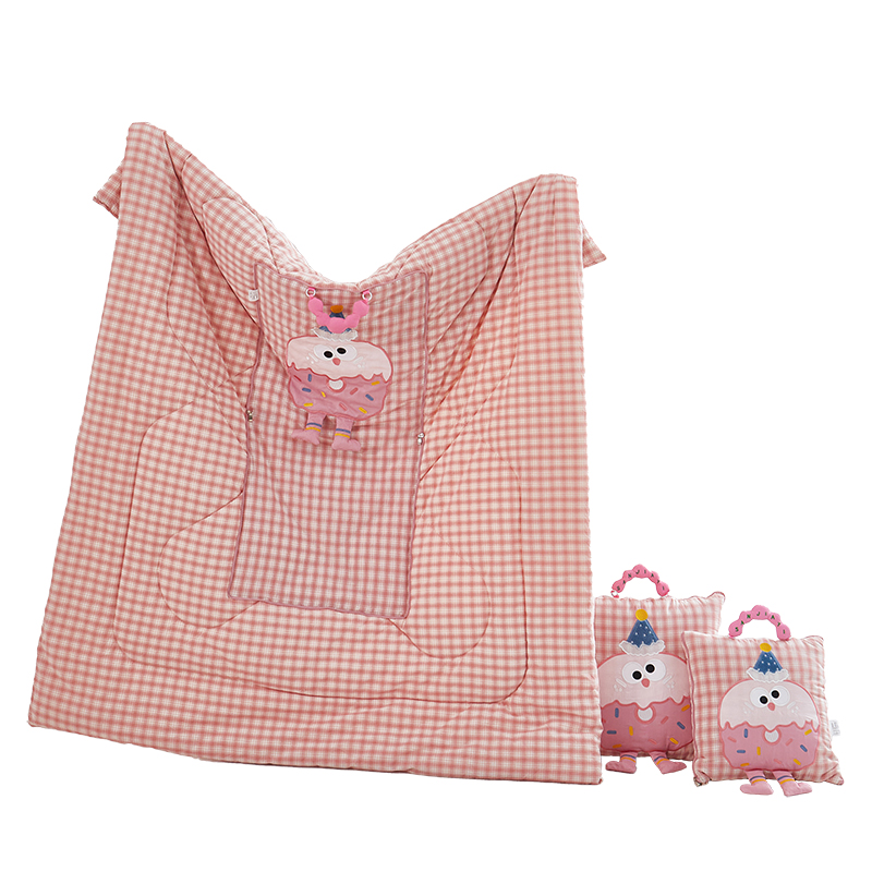儿童卡通全棉色织手提抱枕被子两用午休被办公室车上午休纯棉靠垫