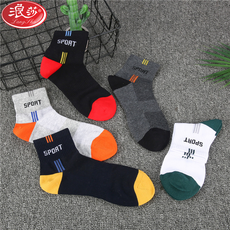 浪莎袜子男士纯棉中筒秋冬厚款春夏网眼薄款ins潮街头运动袜6双