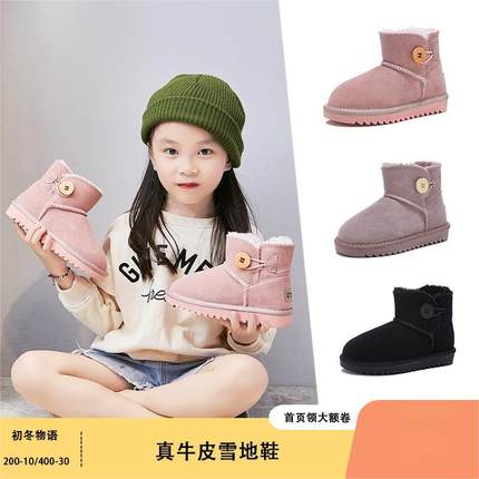 真皮儿童雪地靴女童鞋子新款冬季短男童靴子宝宝加绒加厚保暖棉鞋