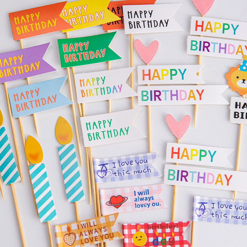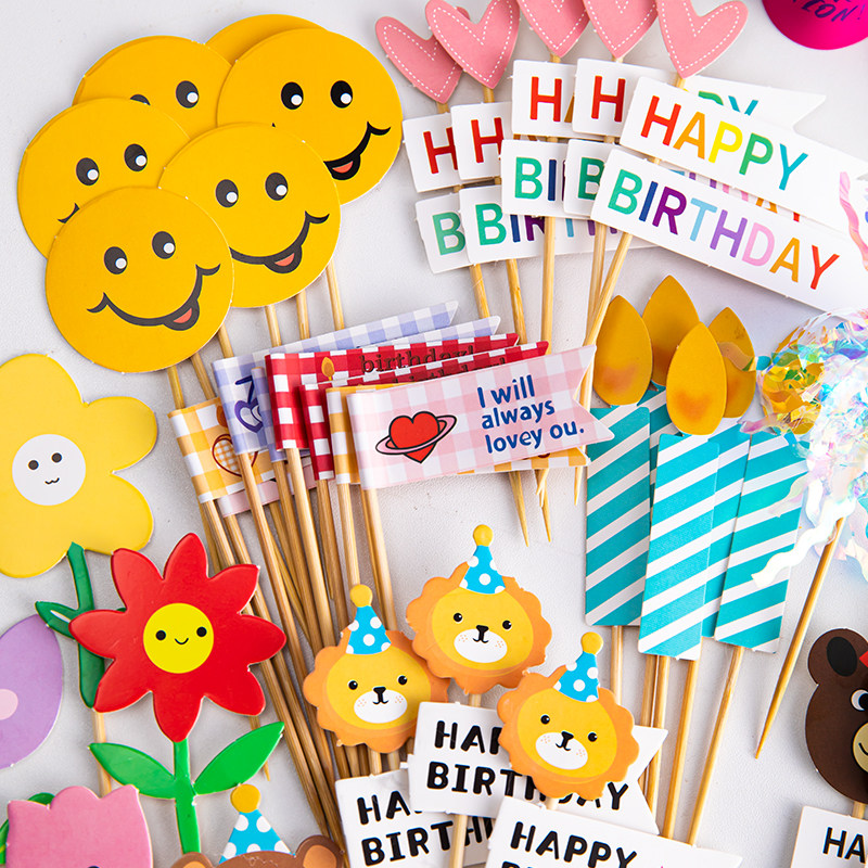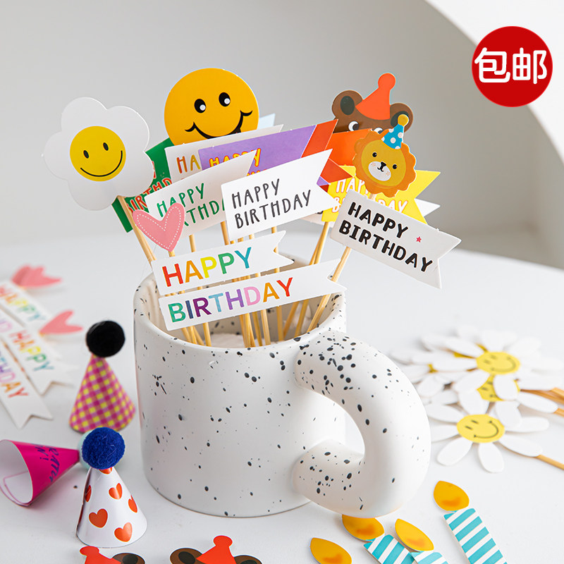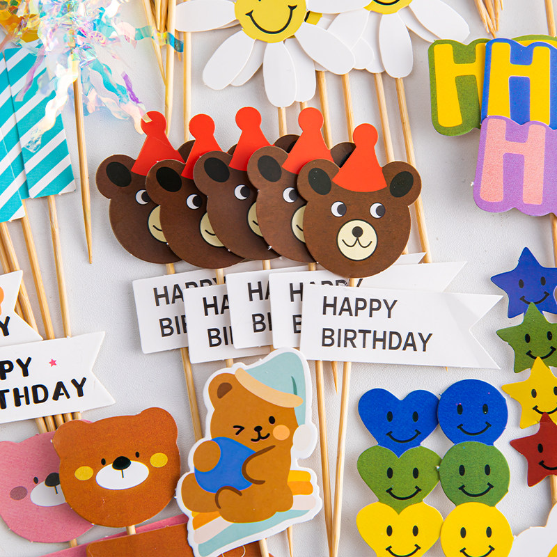 韩式ins风烘焙蛋糕装饰卡通小熊笑脸花朵HBD爱心生日装扮插牌插件