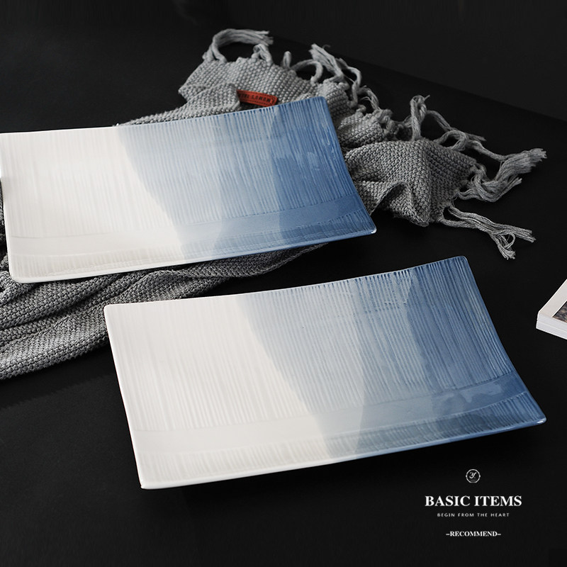 餐厅创意餐具简约陶瓷长方西餐盘寿司盘早餐盘子水果盘蛋糕甜品盘