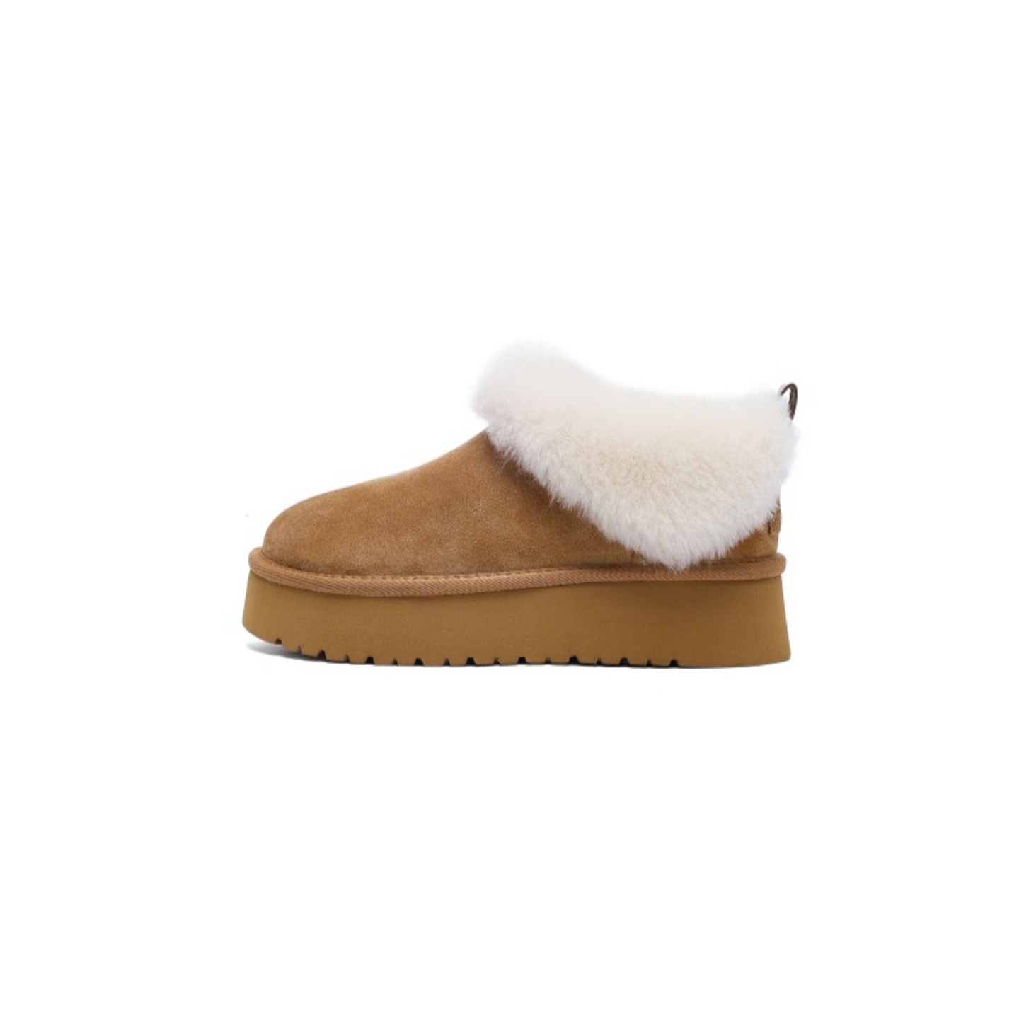 luxueer秋季女士舒适厚底一脚蹬休闲乐福鞋毛毛鞋明星同款雪地靴